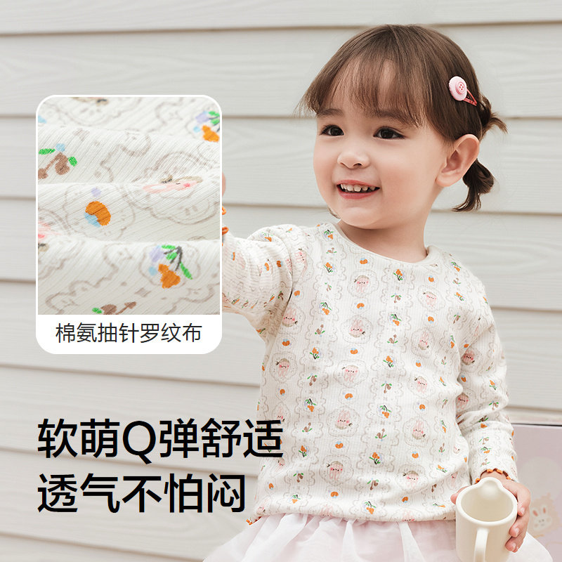 巴拉巴拉balaOne儿童t恤男女宝长袖上衣打底衫2025新款秋装弹力萌