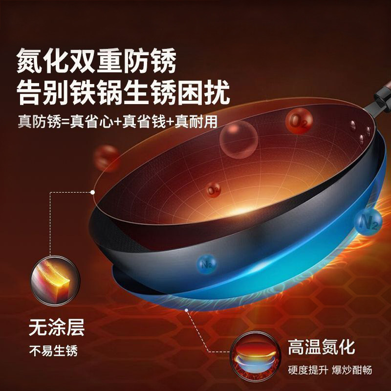 【经典款】中康精铁炒锅铁锅氮化防锈无涂层炒锅电磁炉燃气灶通用