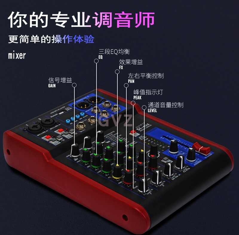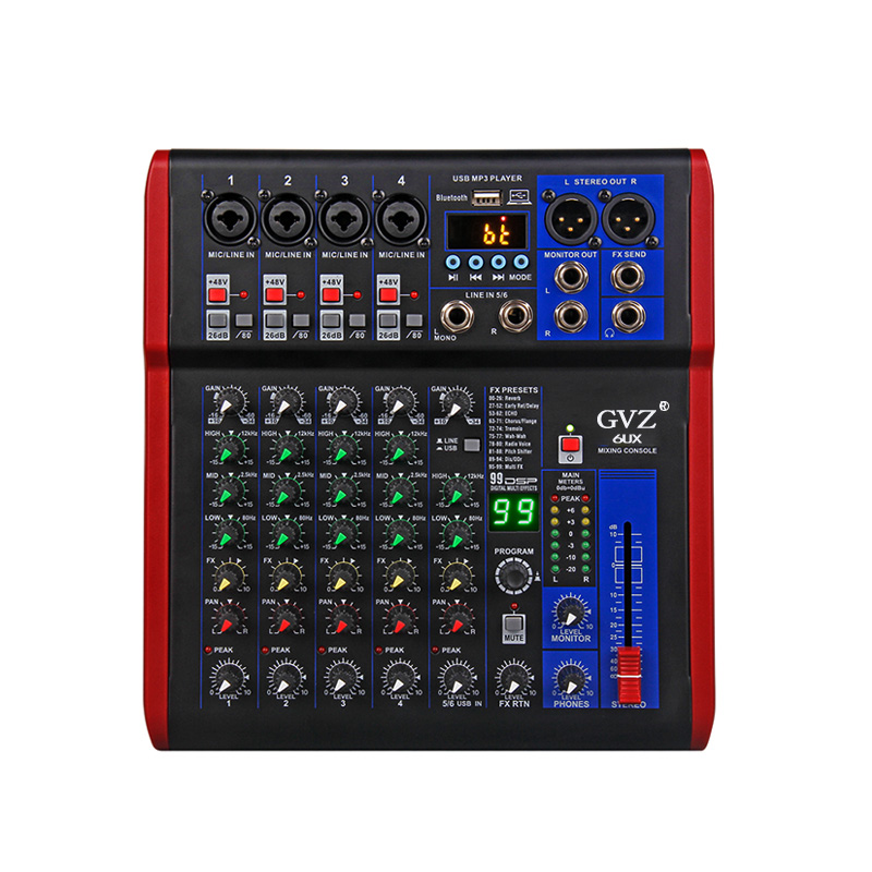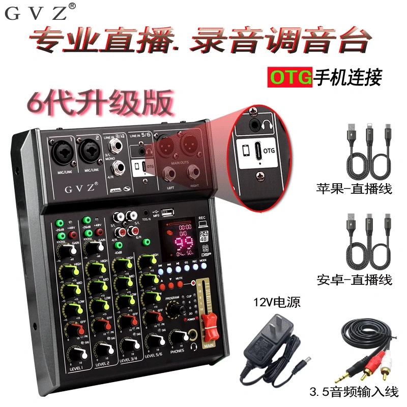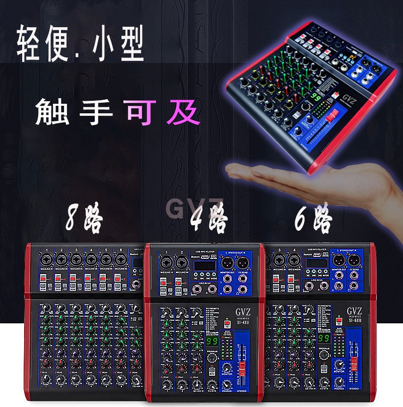小型4路6路8路电脑录音12V调音台mixer混响声卡内录直播调音台