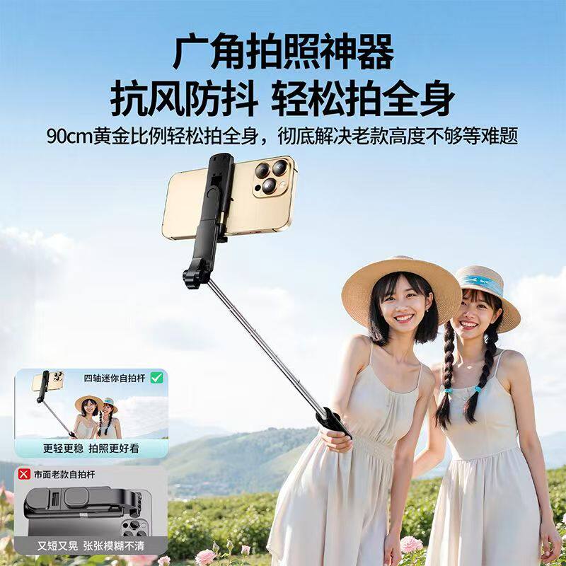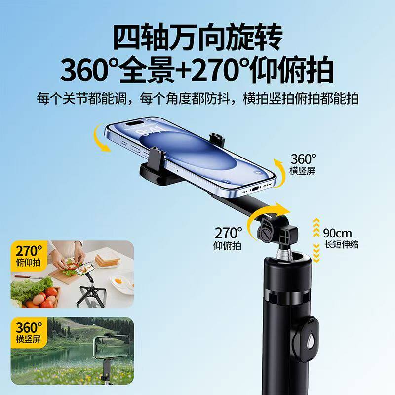 自拍杆2026新款旅游便携式三脚架通用手机拍照神器360度旋转手持防抖稳定摄影vlog蓝牙直播落地支架