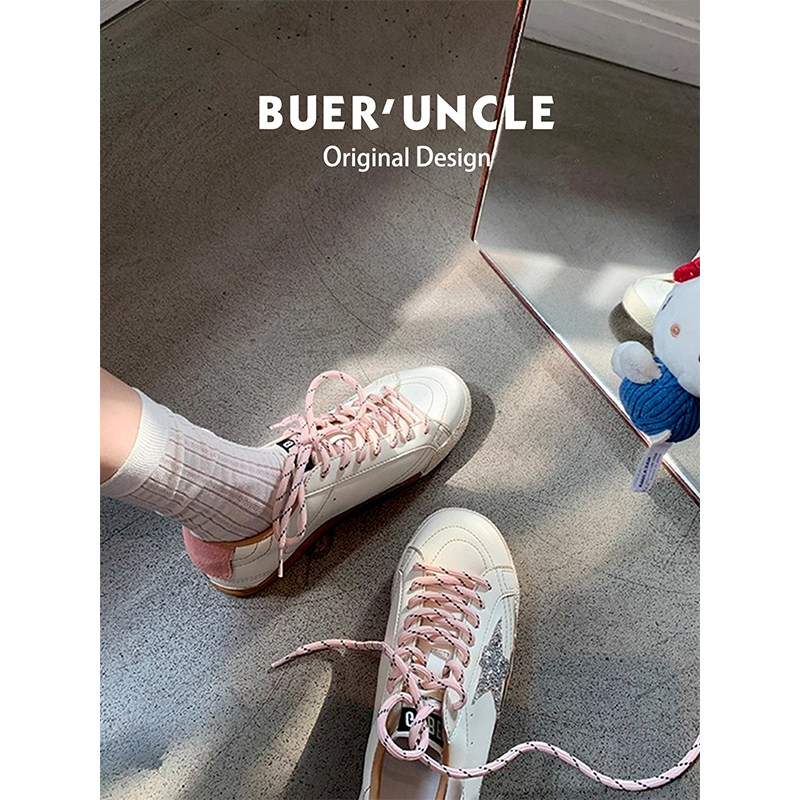 真皮版!德训鞋女2025新款平底休闲运动板鞋阿甘小白鞋星星小脏鞋
