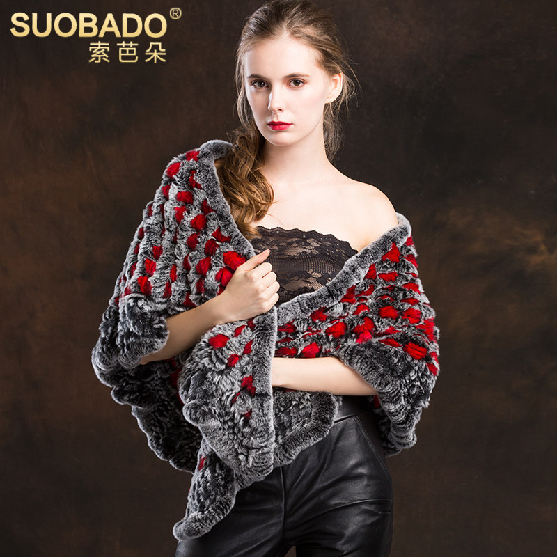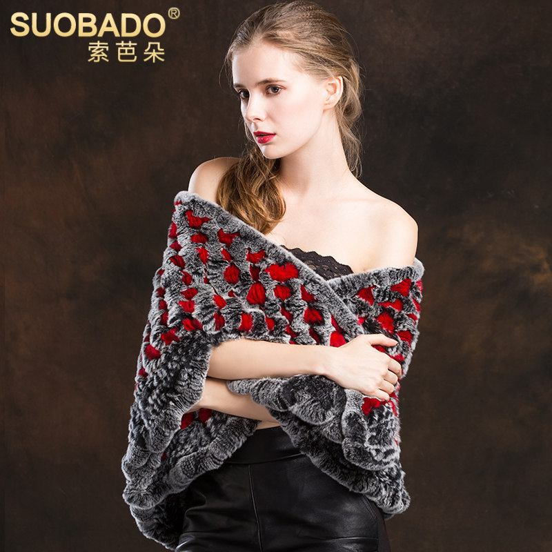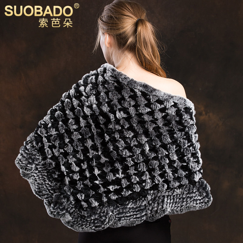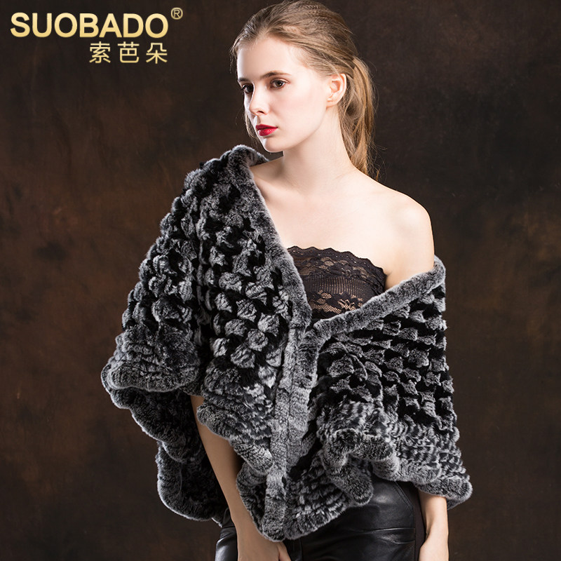 2025新款海宁女秋冬獭兔毛披肩印花保暖编织兔毛坎肩皮草大围巾