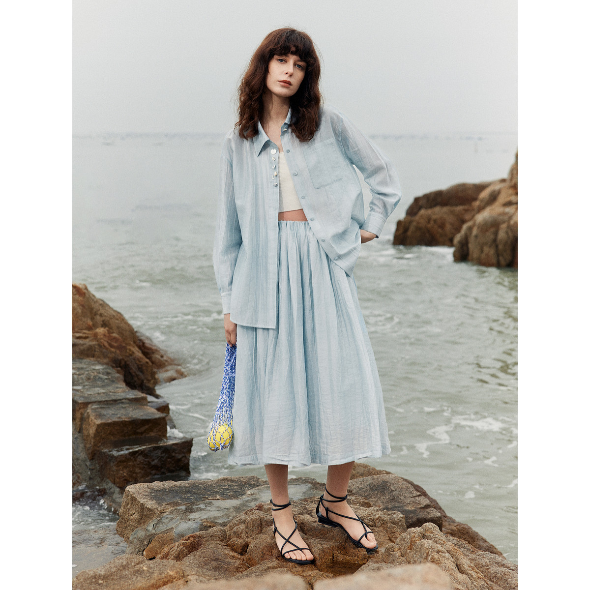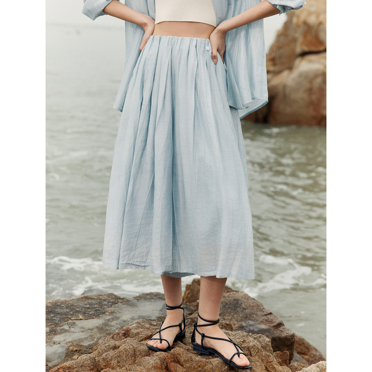 ELLE法式宽松设计感松紧腰裙裤女2025夏季新款莱赛尔天丝休闲裤子