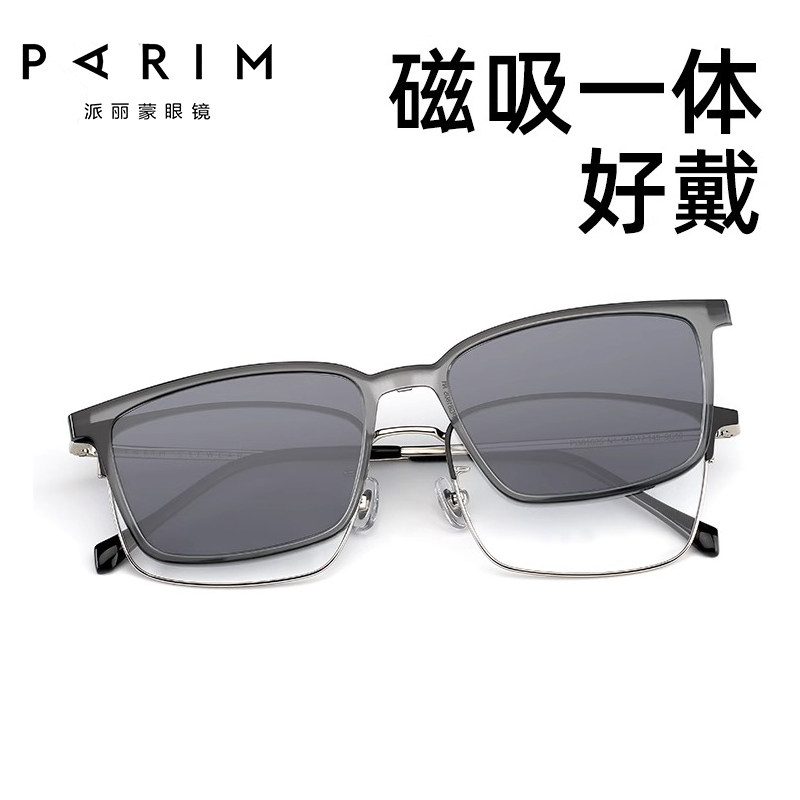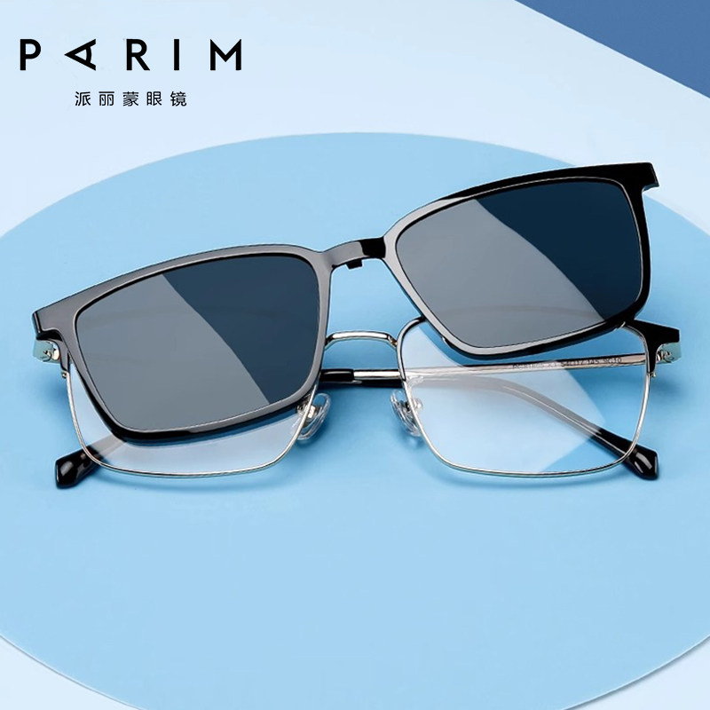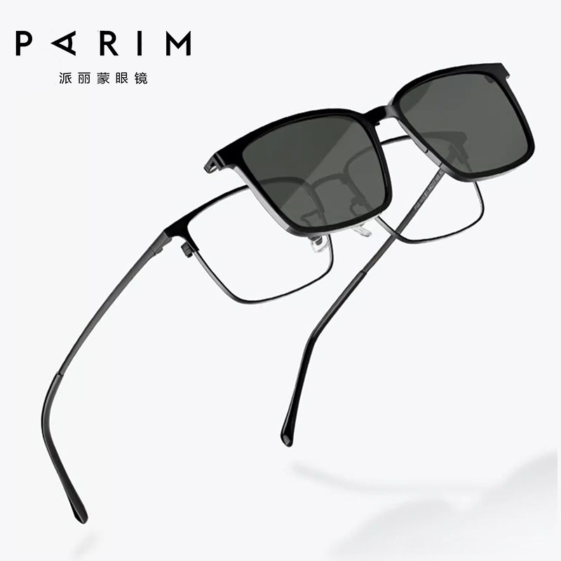 派丽蒙磁吸偏光套镜近视眼镜架男士眉毛眉线框眼镜框配镜片81605