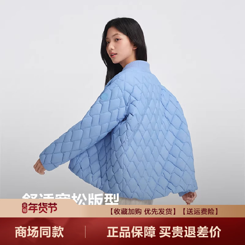 【鞠婧祎同款】鸭鸭2025年冬新款百搭短款女士纯色立领羽绒服外套