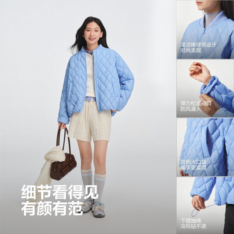 波司登25新款羽绒服女棒球领运动风小廓形轻薄短款外套B250135306