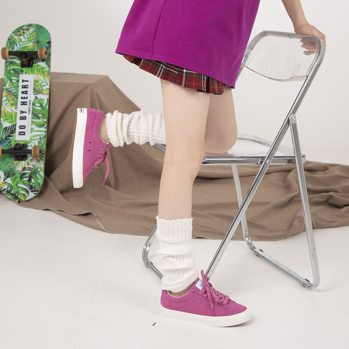 顽刻官方玫红色纯色潮流翻毛皮低帮透气休闲耐磨男女运动05滑板鞋