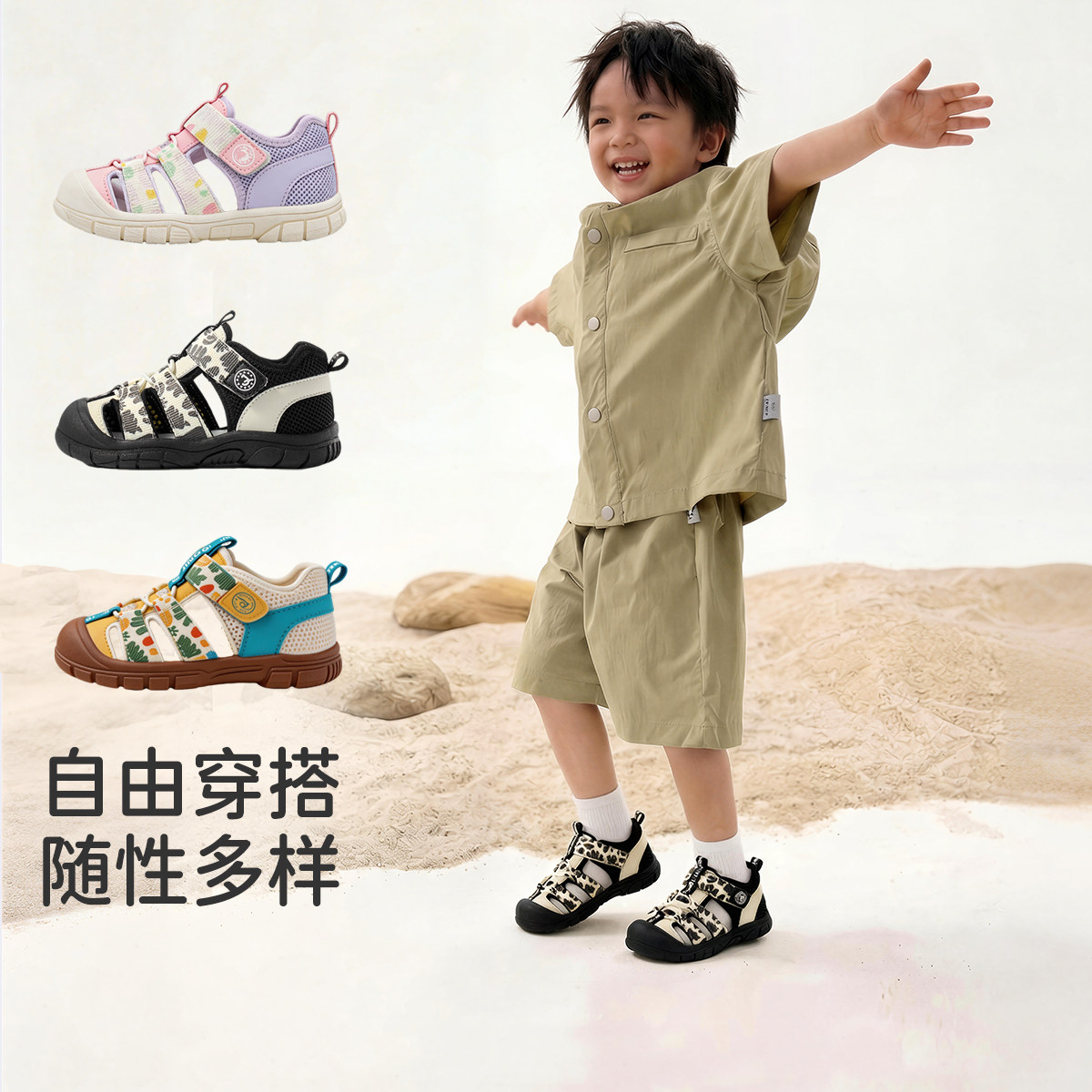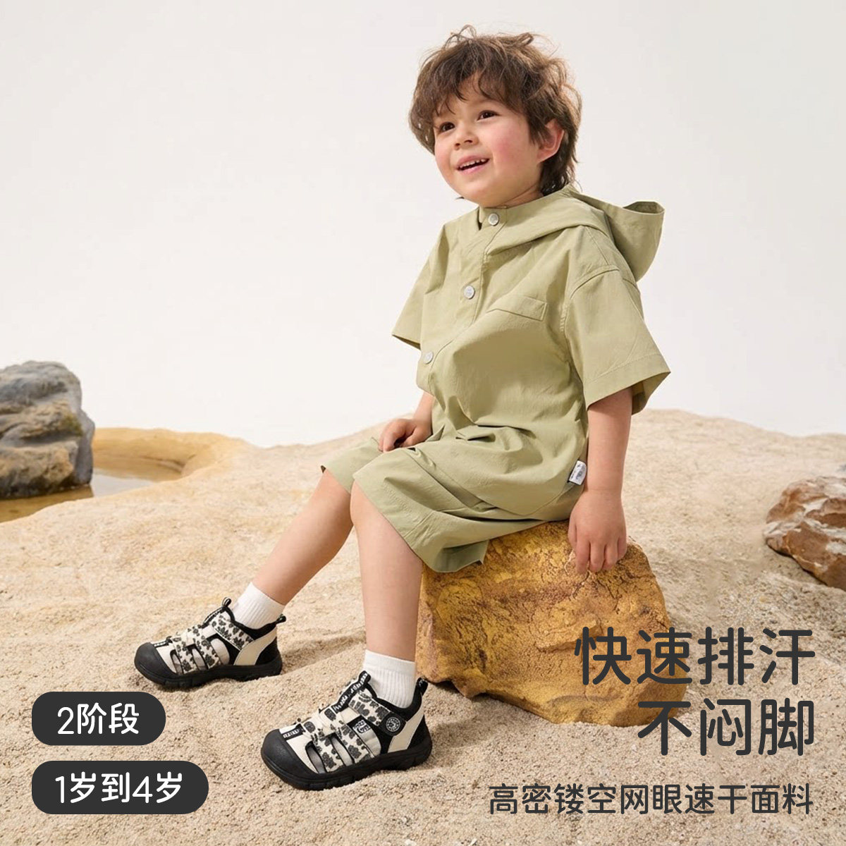 卡特兔儿童凉鞋2025夏季宝宝男童速干踩水鞋防滑女童机能儿童鞋子