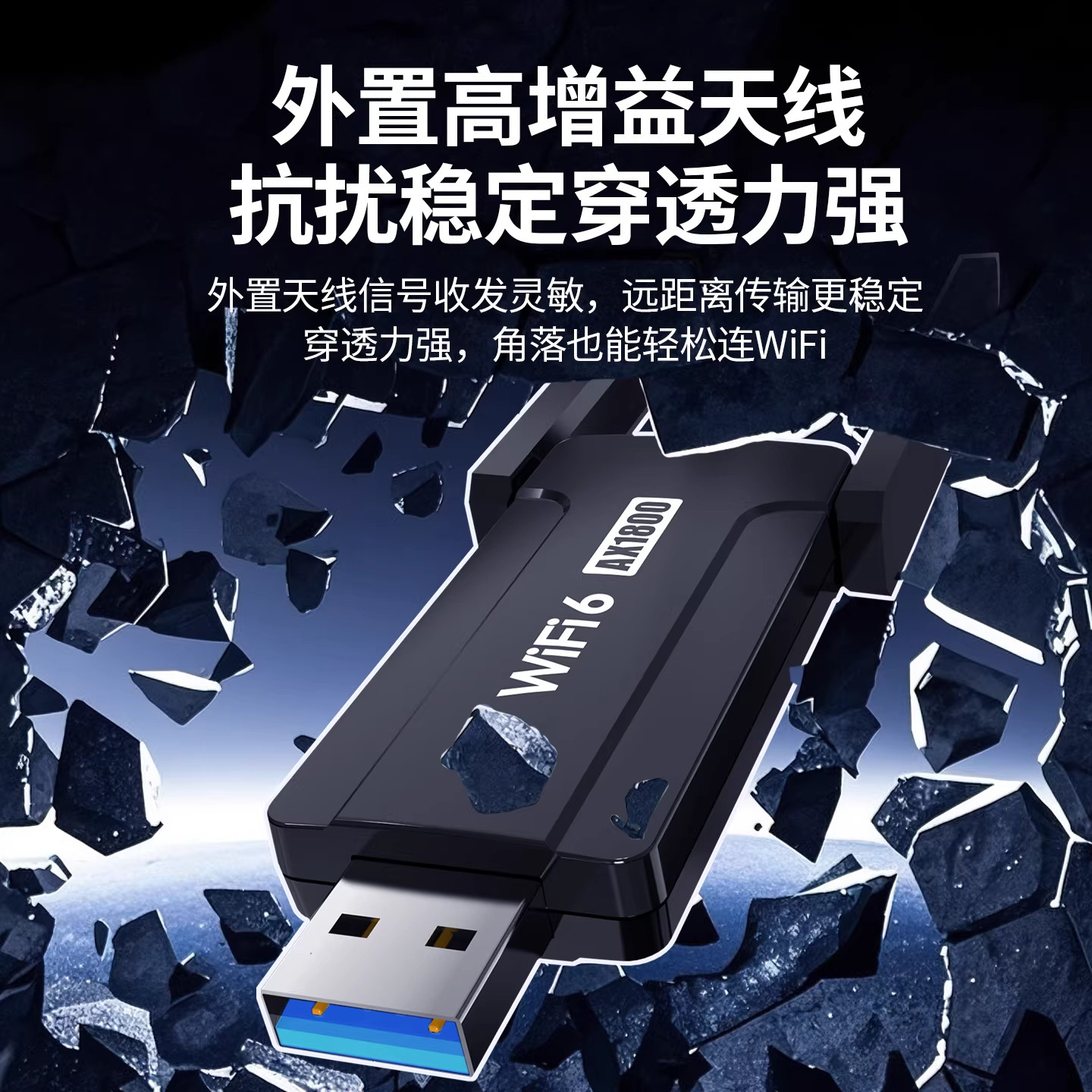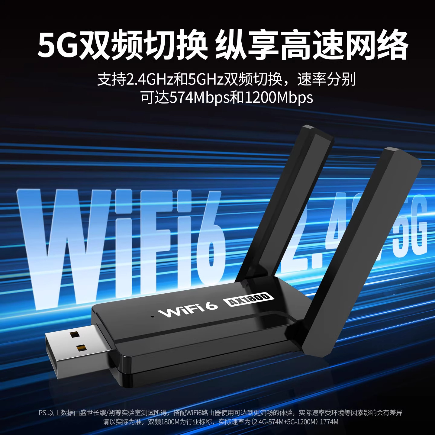 无线网卡台式机wifi接收器免驱动1800m双频usb5G千兆高速笔记本电脑WiFi6无线wifi发射器即插即用