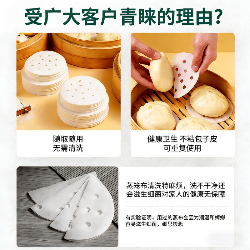 蒸笼纸不粘圆形包子馒头纸垫一次性家用食品级不沾蒸锅油纸蒸笼布