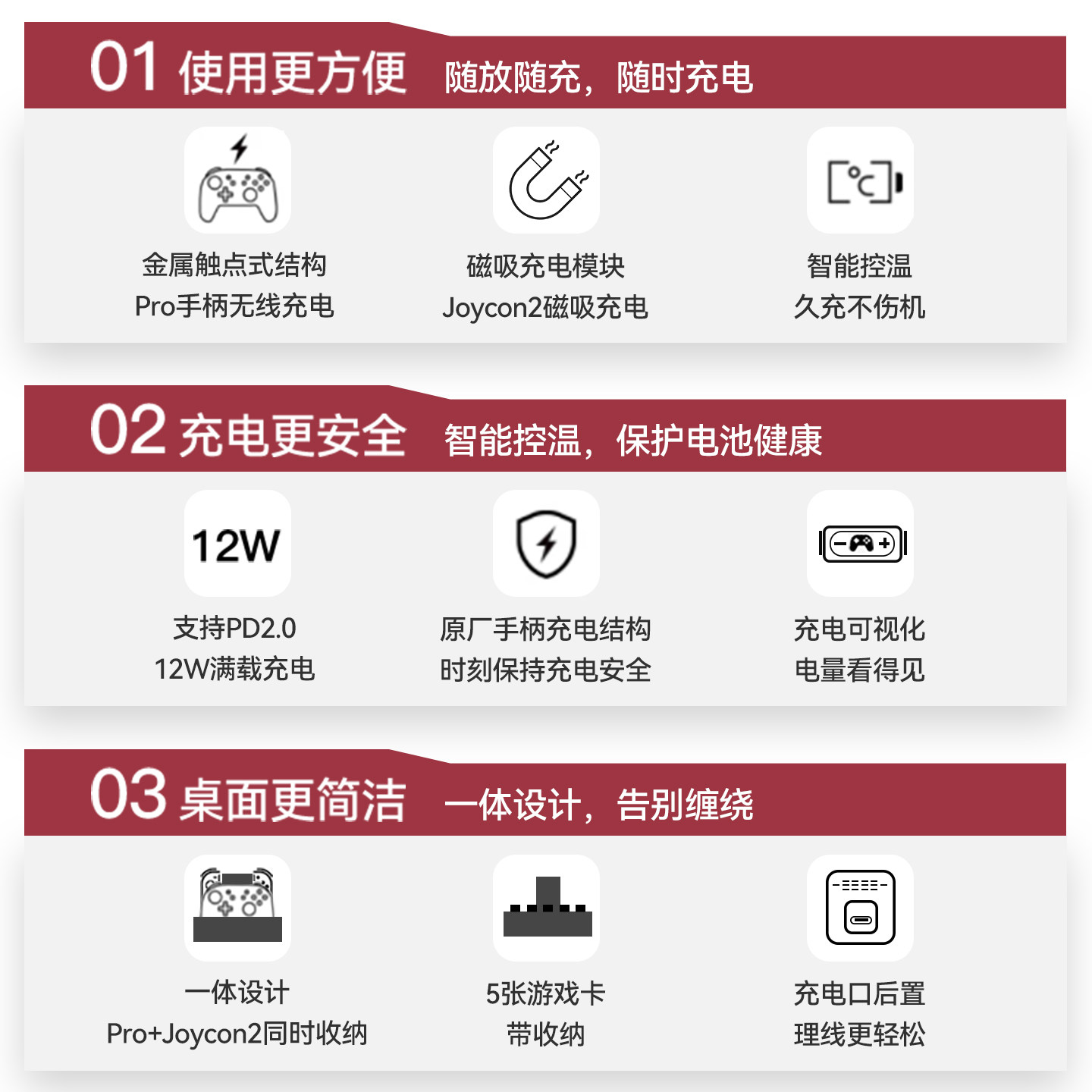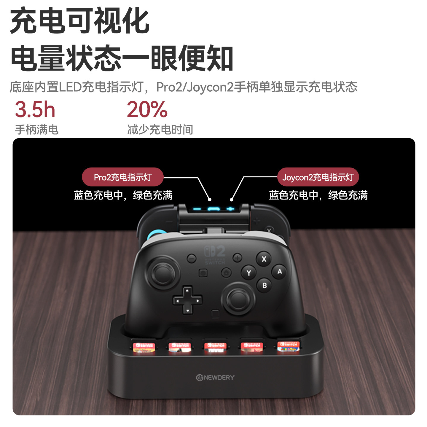新得利任天堂Switch2pro手柄充电座Joycon2充电底座NS2分体手柄便携座充卡带收纳支架游戏手柄周边配件