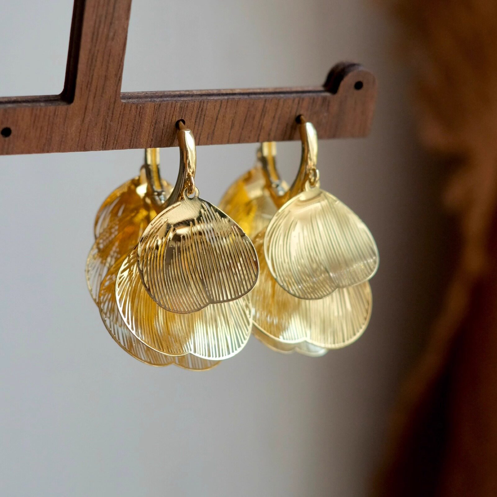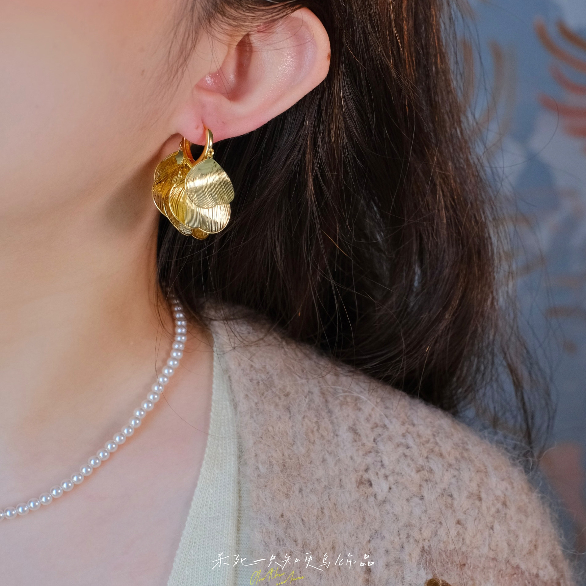 《金瓣舞》复古高级感优雅精致金色树叶镂空流苏翅膀耳环耳夹耳饰