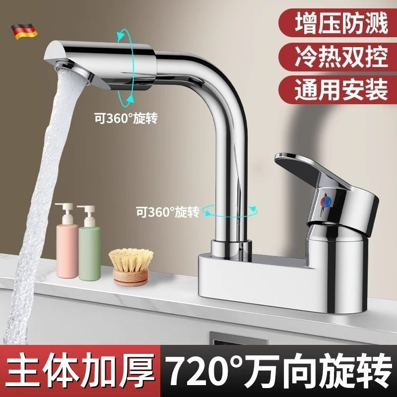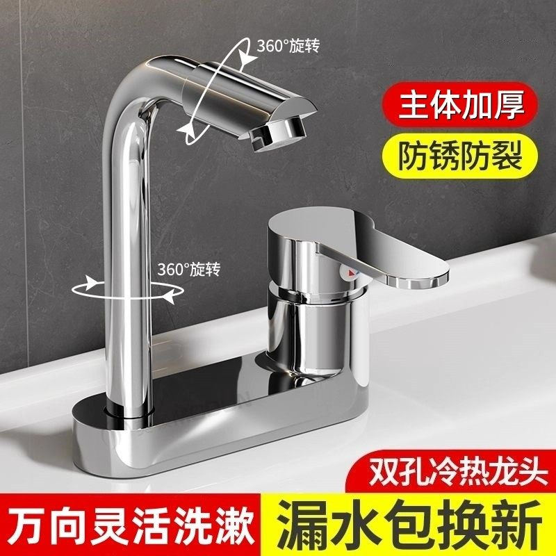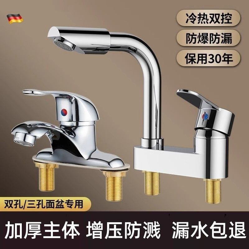 洗脸盆双孔水龙头冷热混合阀浴室洗手盆洗漱台面盆家用老式二合一