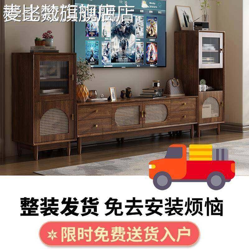 麦比梵复古藤编电视边柜家用简约中式边柜斗柜中古风客厅卧室长虹玻璃床笠拉车