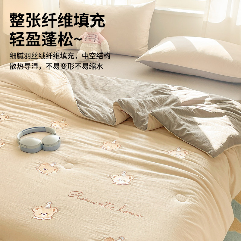 A类全棉双层纱夏凉被四件套空调被可机洗薄款被子夏季夏被三件套4