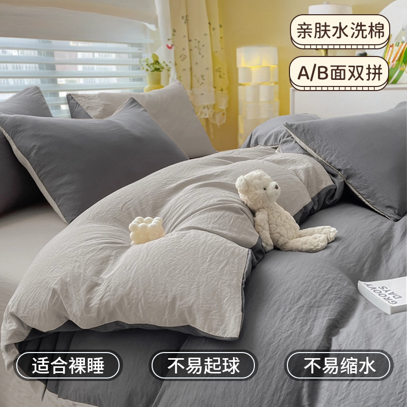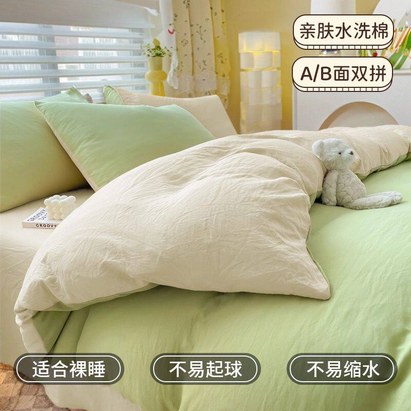 ins风水洗棉被套单件亲肤简约纯色被罩150x200非全棉纯棉冰丝床单