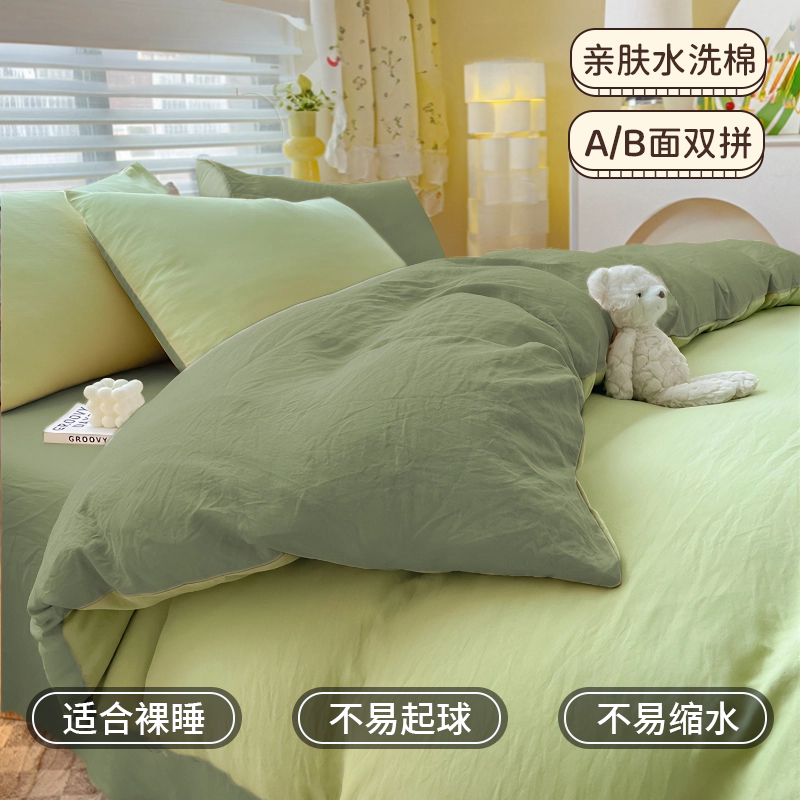 纯色被套单件被罩150x200x230纯水洗棉四件套单人学生宿舍三件套