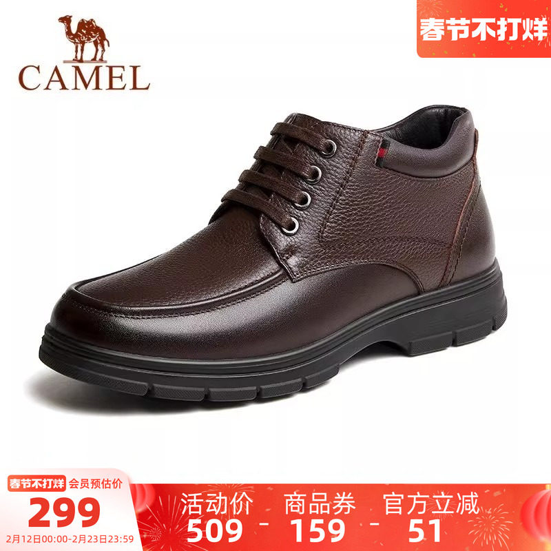 骆驼男鞋2025冬季新款真皮爸爸鞋防滑舒适加绒保暖休闲商务皮鞋男