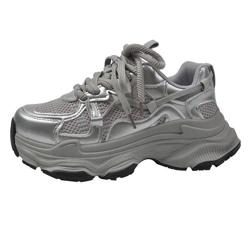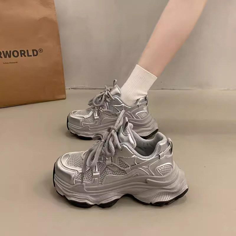 2025新款秋冬季加棉厚底老爹鞋女水钻真皮小个子增高运动鞋子女款