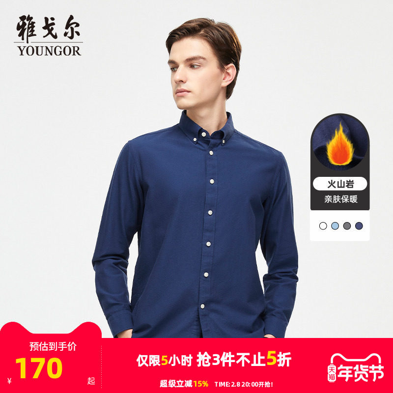 雅戈尔冬季新品商务休闲火山岩发热牛津纺长袖保暖长袖衬衫男