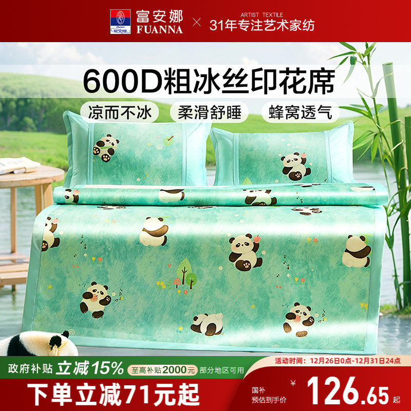 富安娜凉席儿童款凉席床垫粗冰丝凉感软席学生宿舍可机洗床护垫