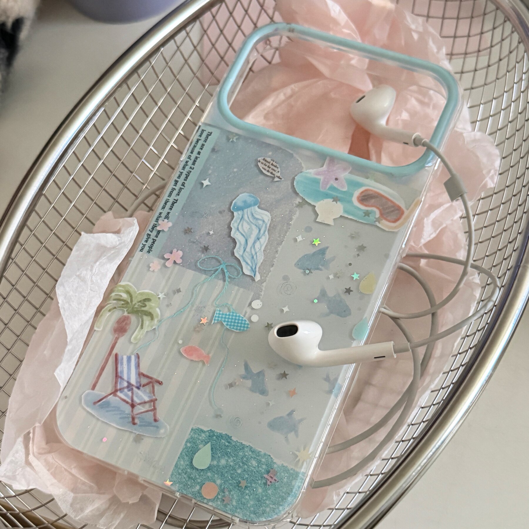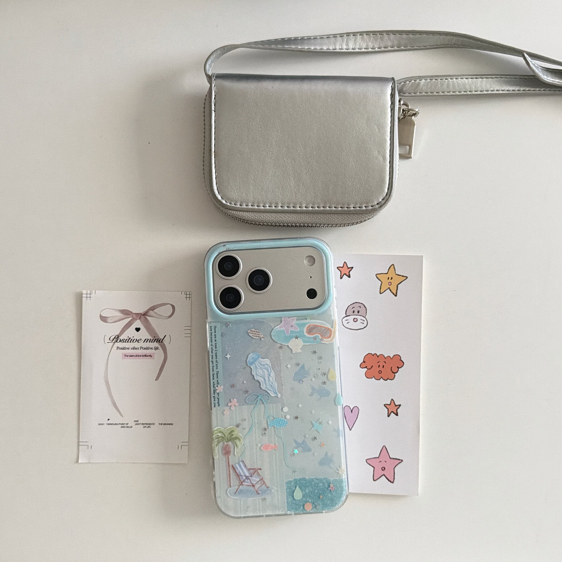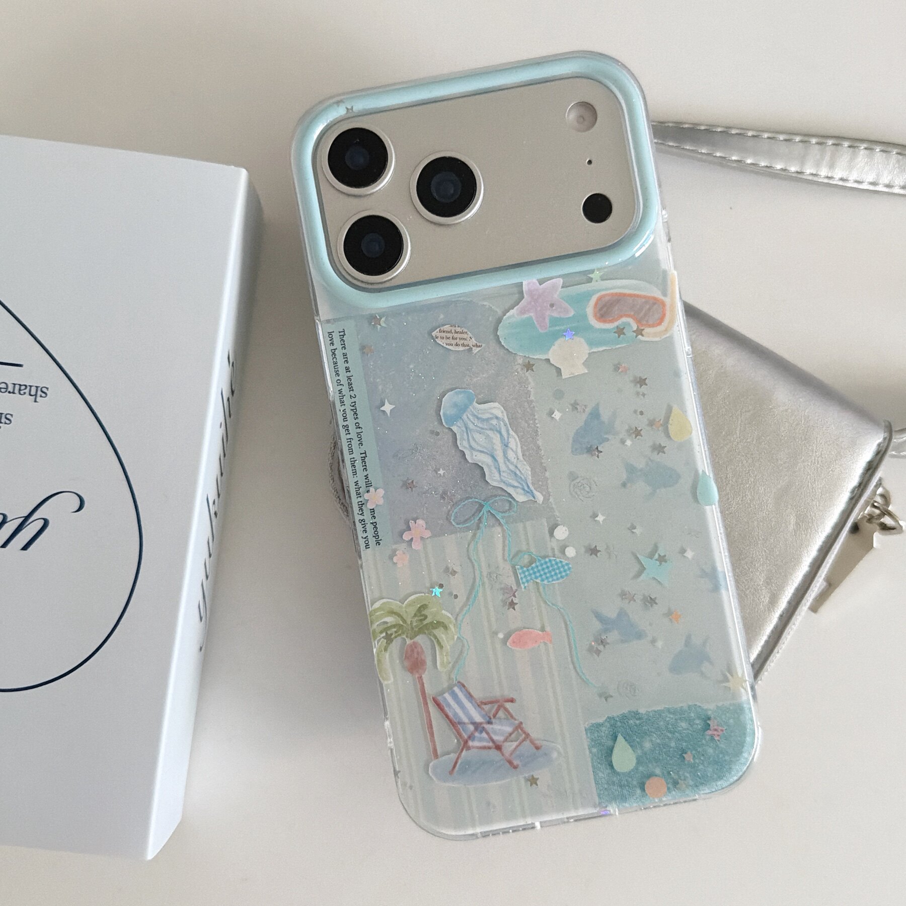 蓝色生命力海洋动物小众高级感IMD双层闪粉星星适用苹果17Promax手机壳iphone16Pro艺术15水母14pm清新保护套