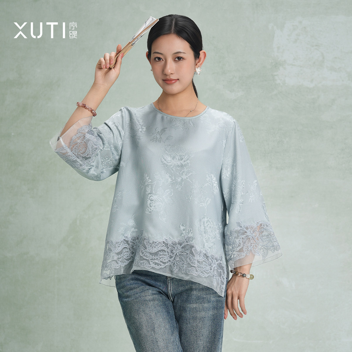 序缇质造100%桑蚕丝 新中式提花上衣女2026早春新款H116-28583