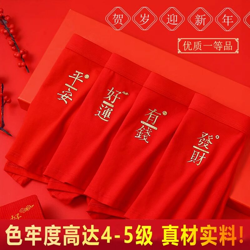 本命年男士红色内裤男生平角裤抗菌大红色结婚属码四角短裤礼盒装