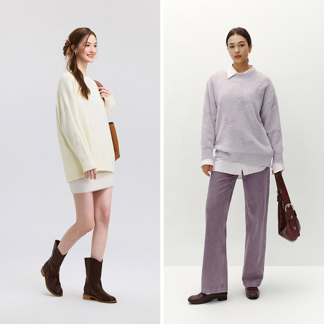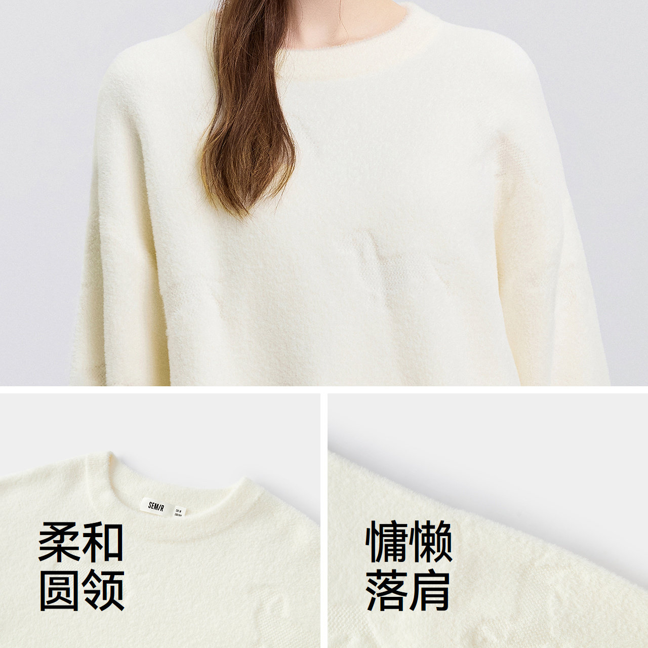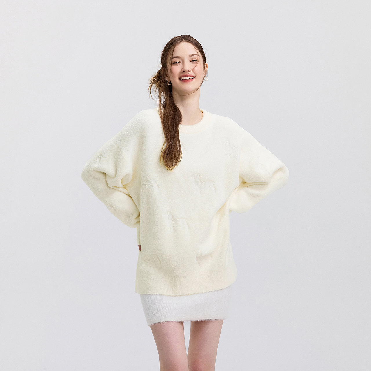 森马毛衣女冬季oversize小狗提花圆领软糯毛衫慵懒风温柔甜美上衣