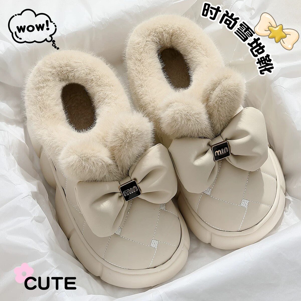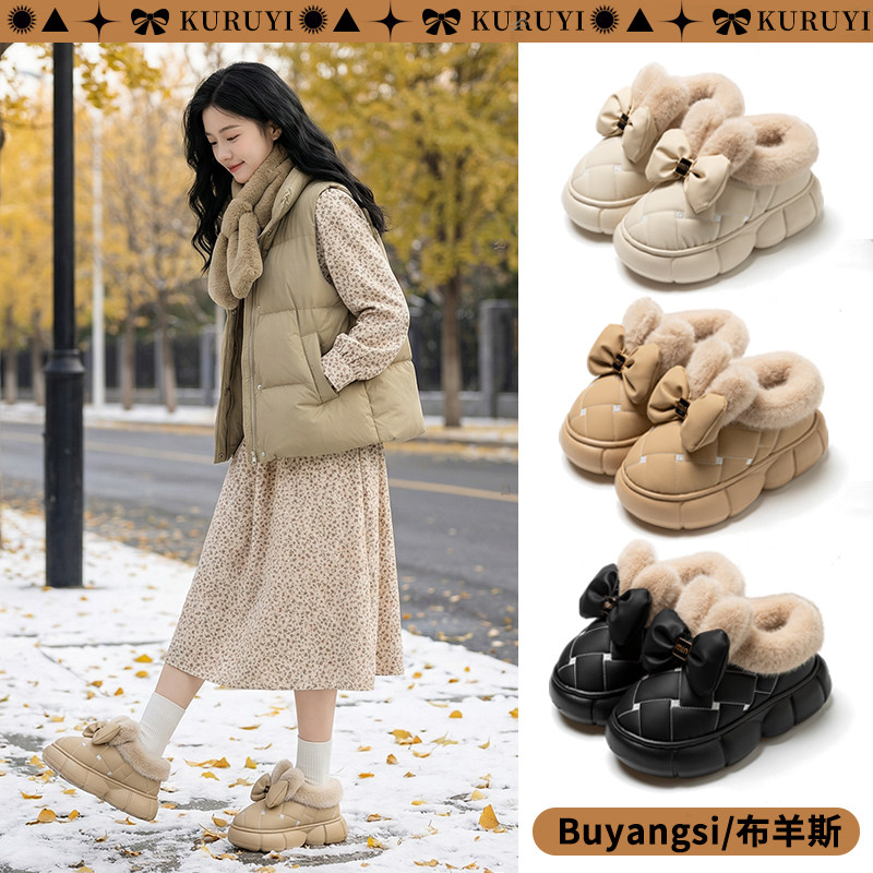 蝴蝶结雪地靴女冬季2026新款包跟防水加绒加厚保暖包跟棉拖鞋外穿