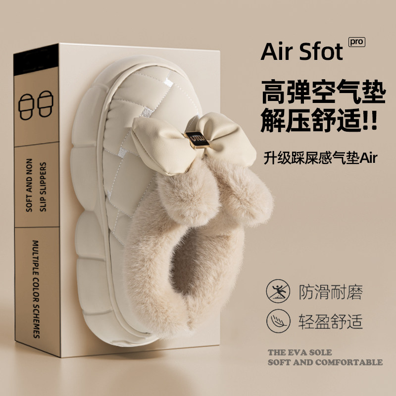 红豆踩屎感棉拖鞋女士秋冬季室内家居2025新款毛绒保暖情侣棉拖男
