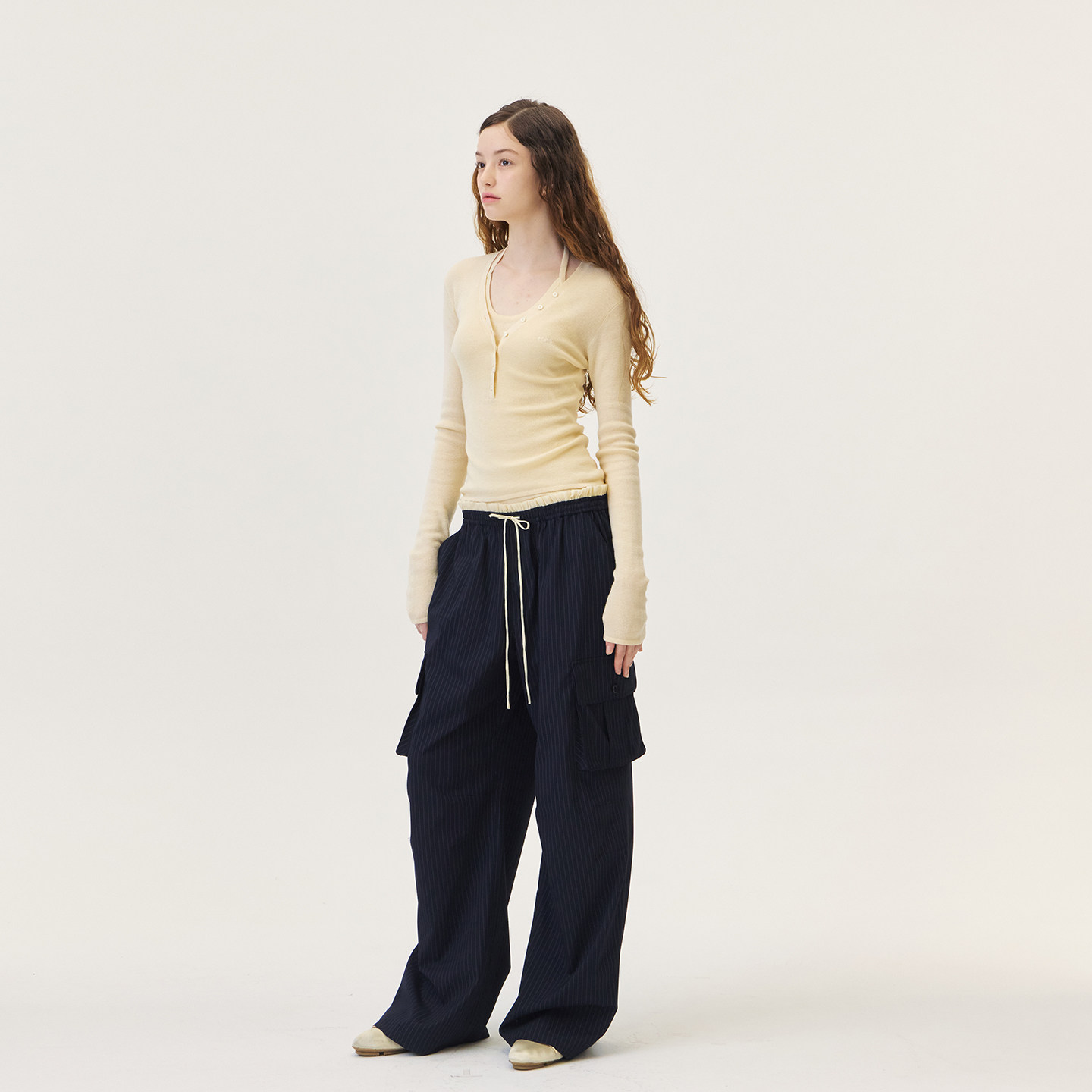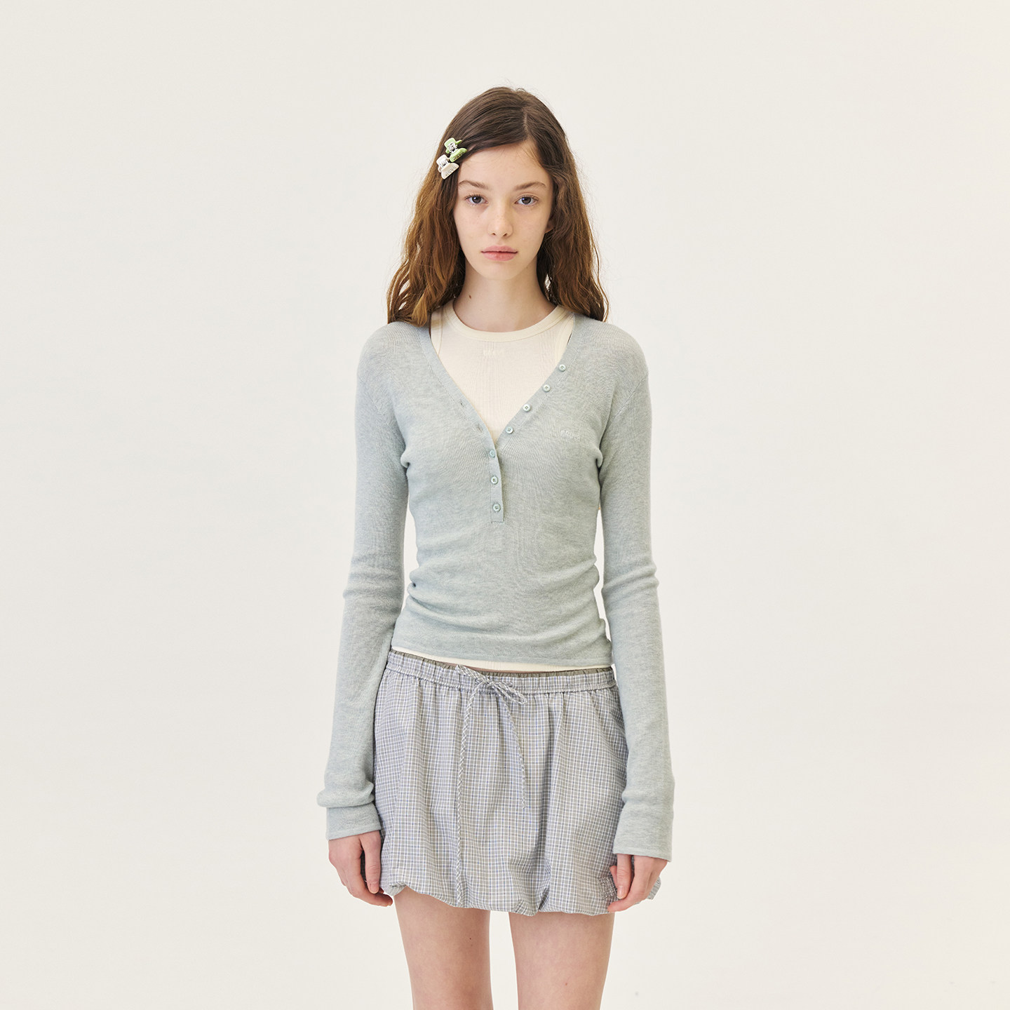GROVE官方旗舰店2026PS春季新款长袖T恤V领打底衫 GP26KNE12