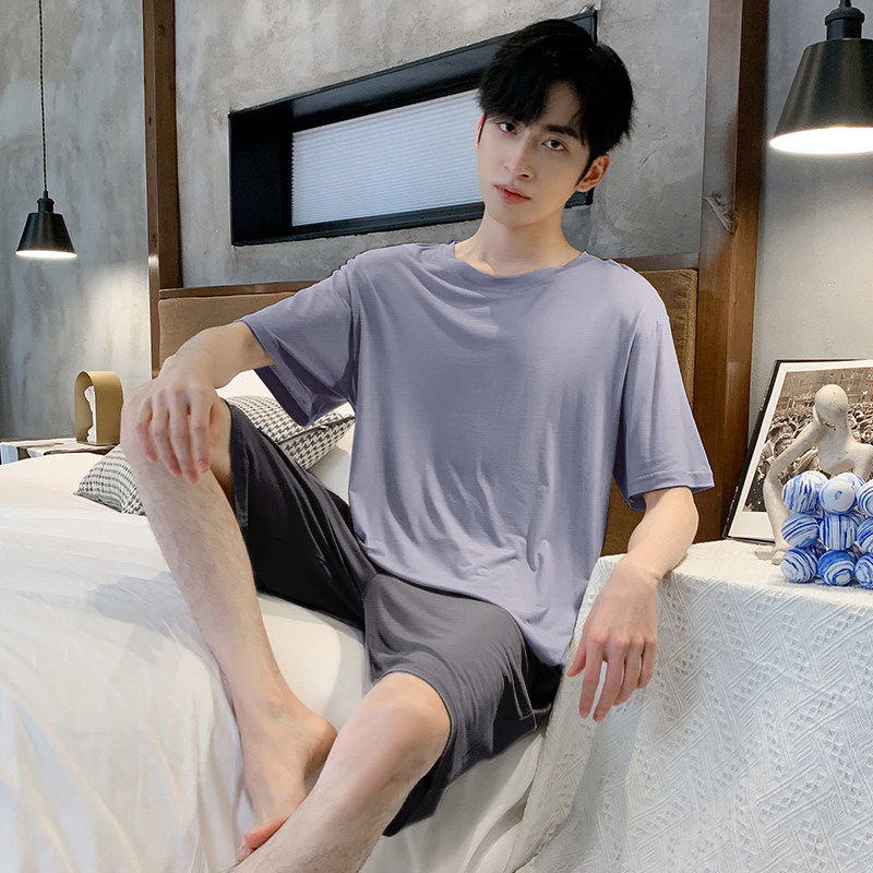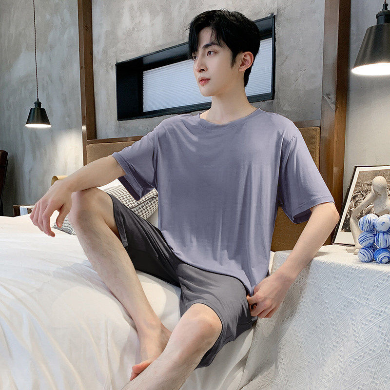 红豆夏季睡衣男士短袖莫代尔薄款青少年男生冰丝夏天可外穿家居服