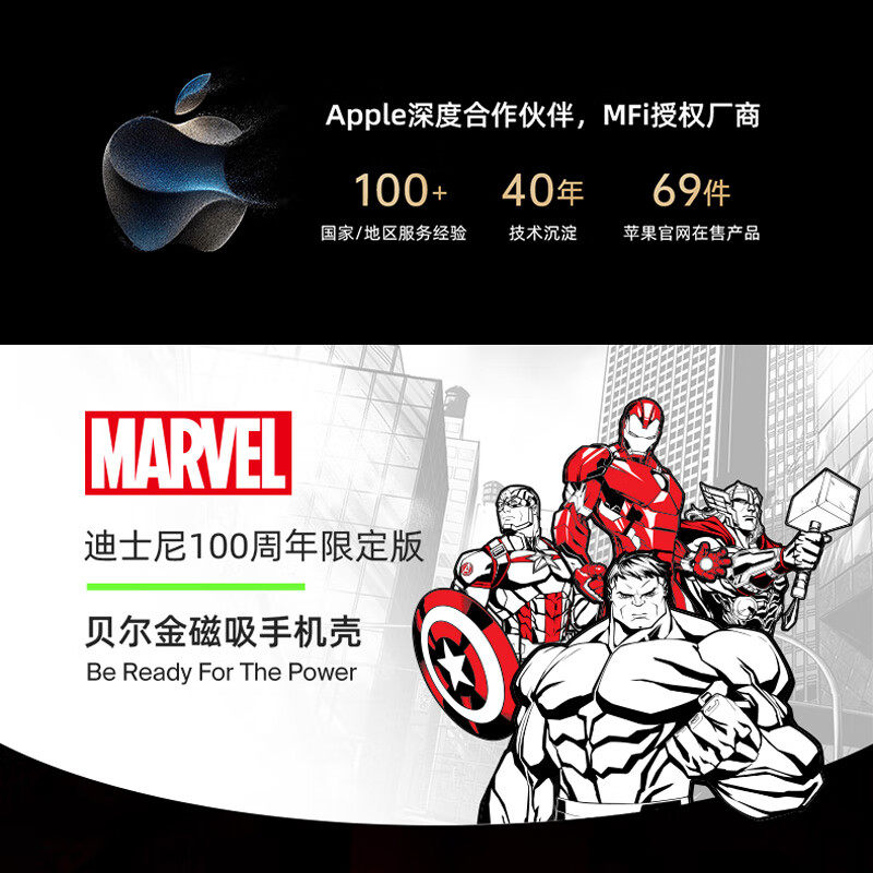 Belkin贝尔金迪士尼漫威钢铁侠限定款适用苹果14iPhone15promax手机壳磁吸MagSafe防摔保护套