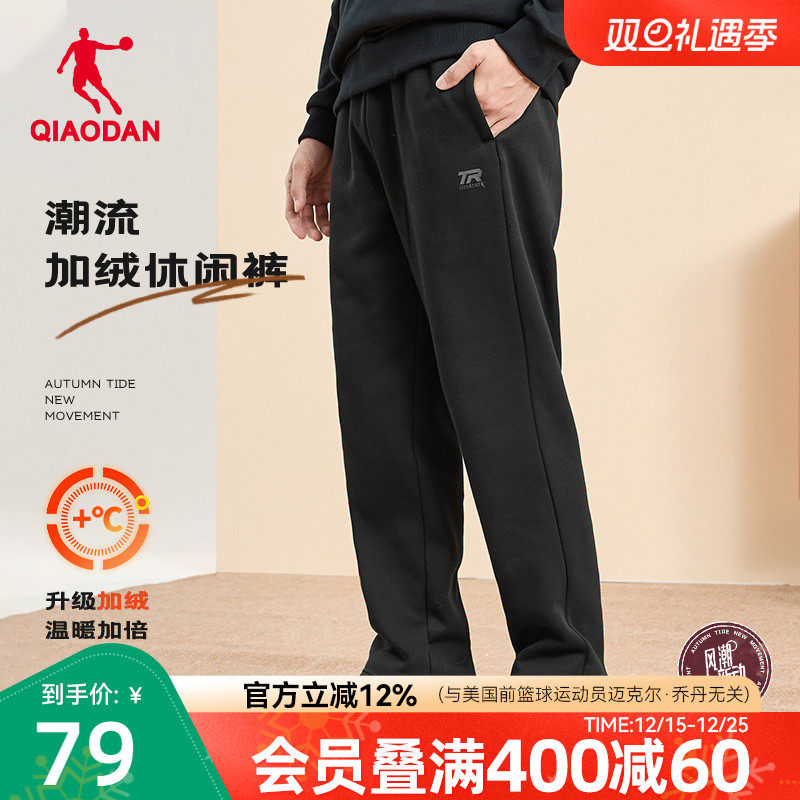 乔丹加绒保暖运动裤冬季新款直筒加厚休闲宽松男士卫裤长裤子官方