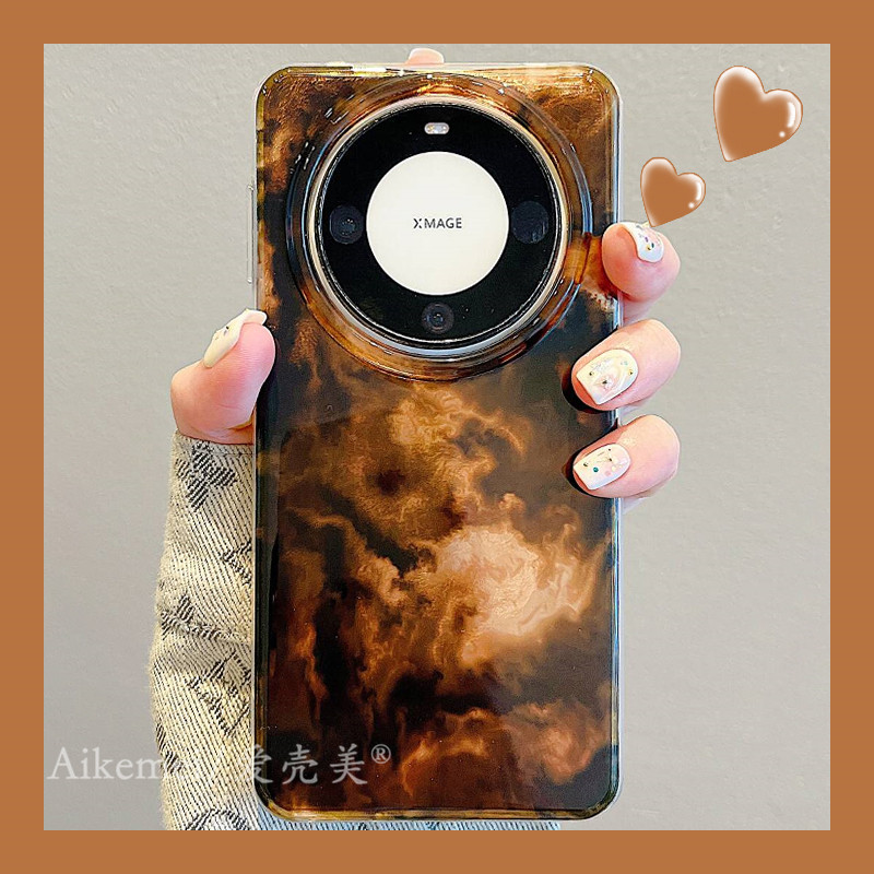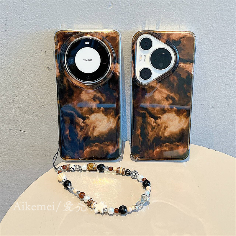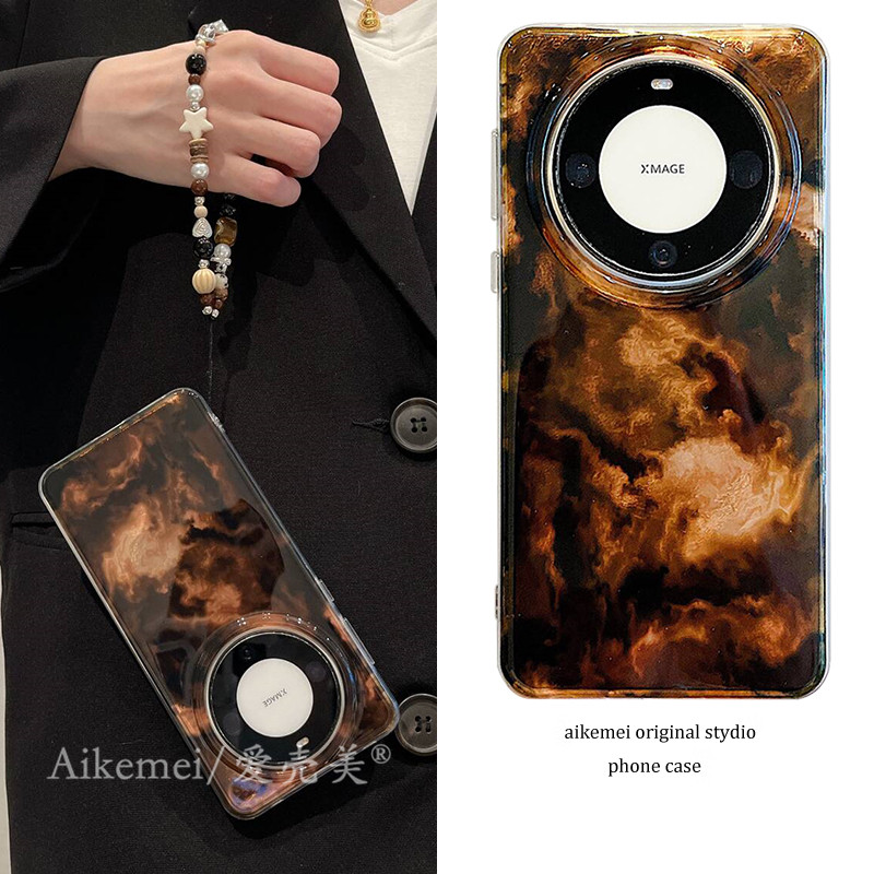 适用华为mate70pro+新款手机壳高级感Mate80promax复古琥珀黑棕渐变晕染mate60pro链条挂绳pura70pro防摔女款