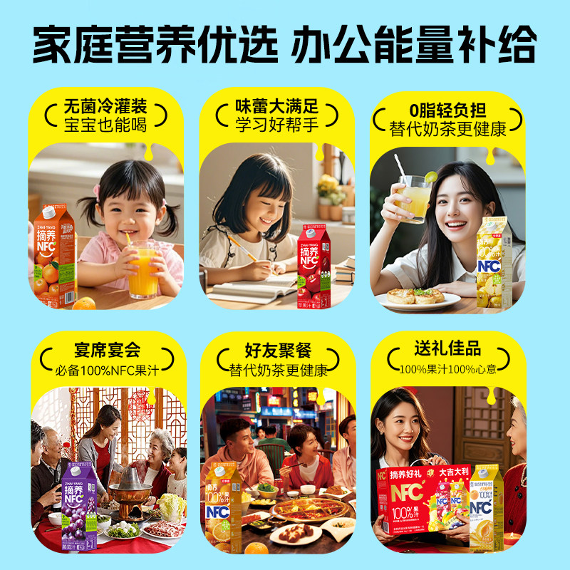 摘养100%NFC纯果汁苹果芒果葡萄汁婚宴聚餐饮料儿童果汁火锅饮品