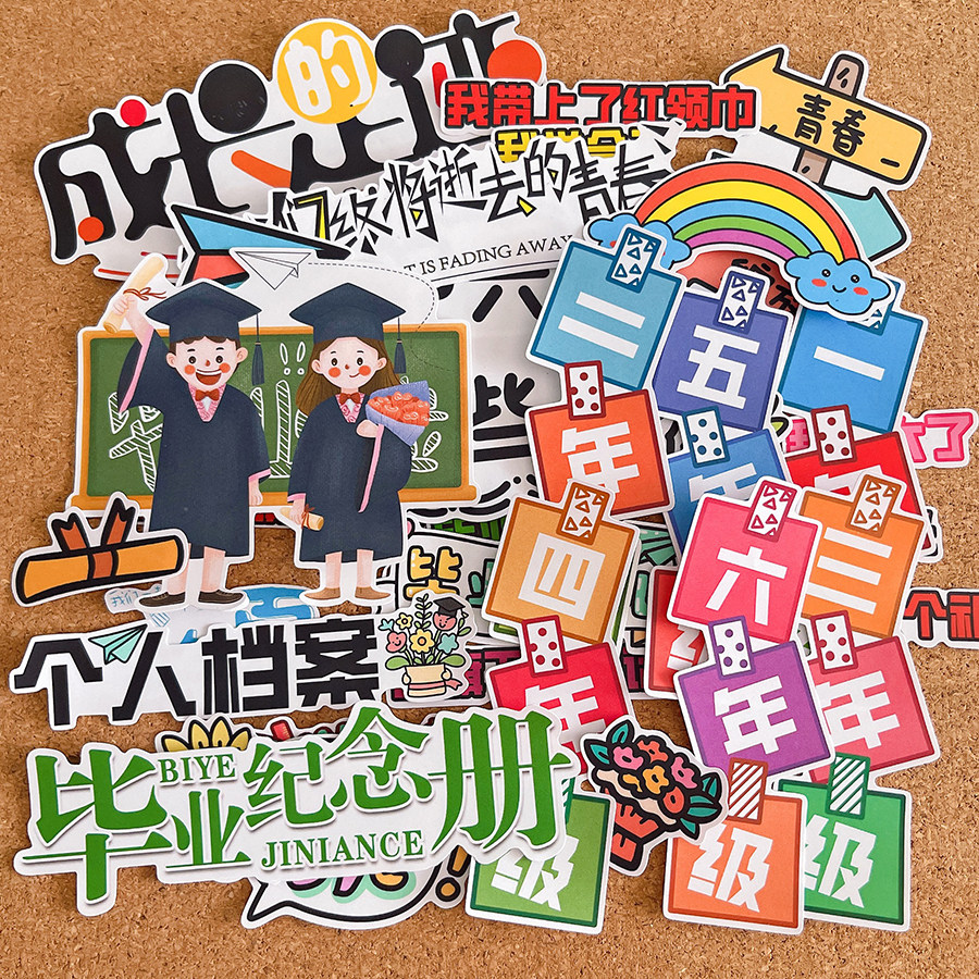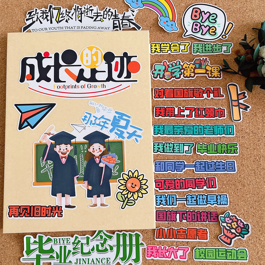学生毕业季成长相册同学录手帐贴纸可爱卡通文字幼儿园小学初高中纪念册DIY装饰高颜值成长相册伴手礼贴画