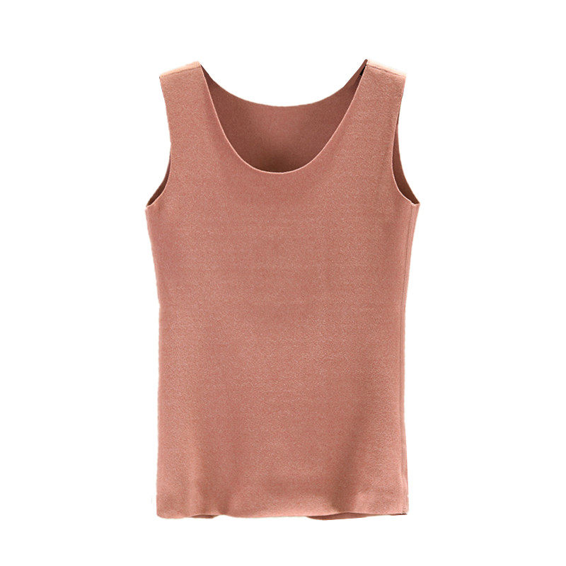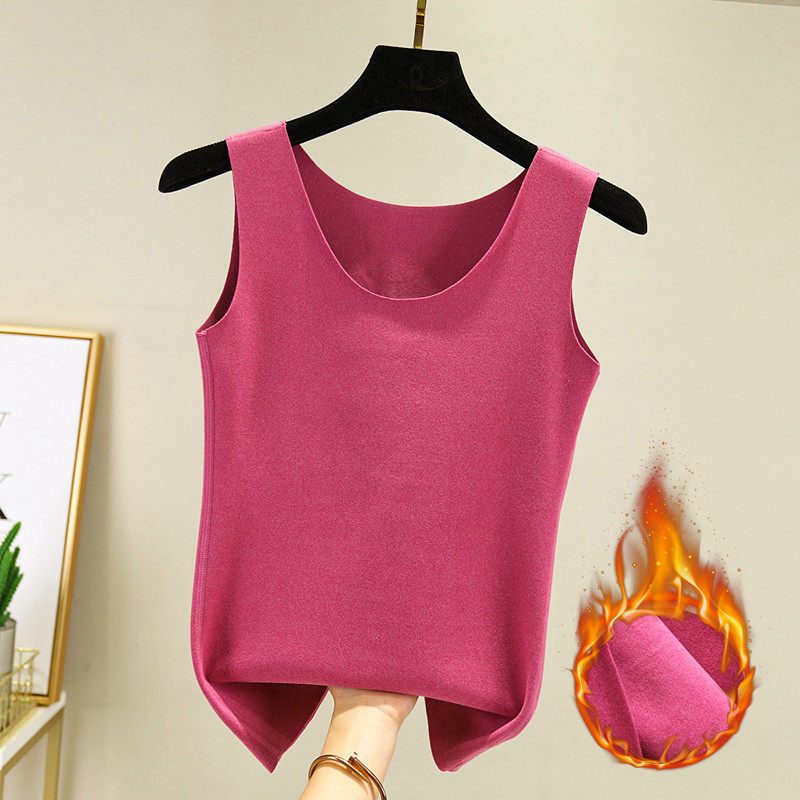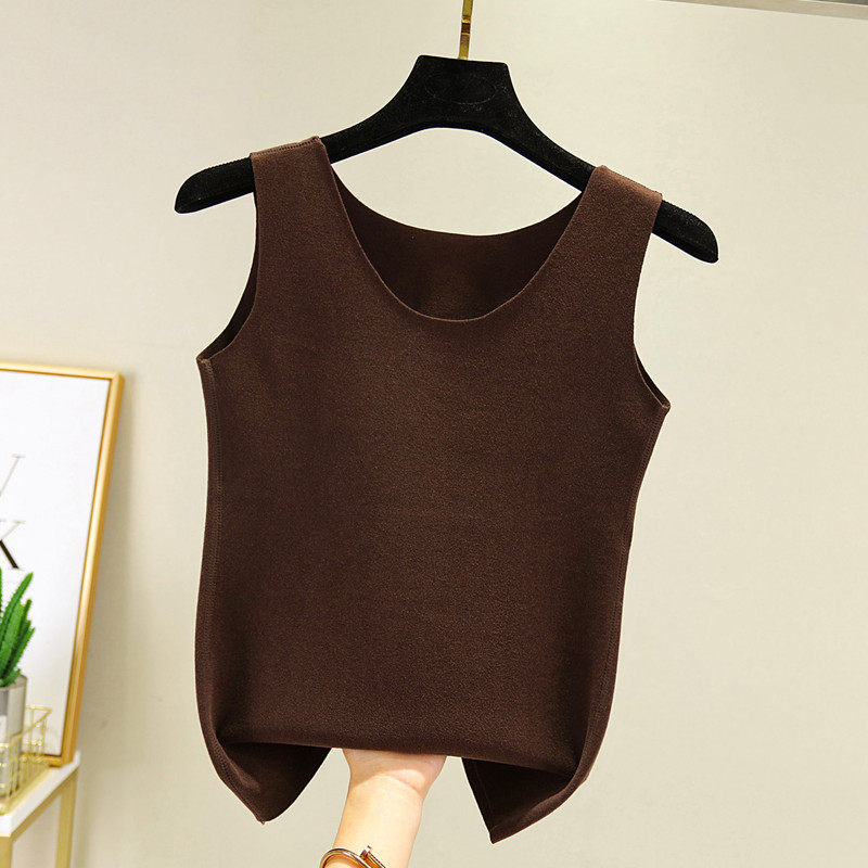 秋冬新款德绒背心女双面磨毛保暖纯色无袖纯棉吊带打底衫内搭上衣