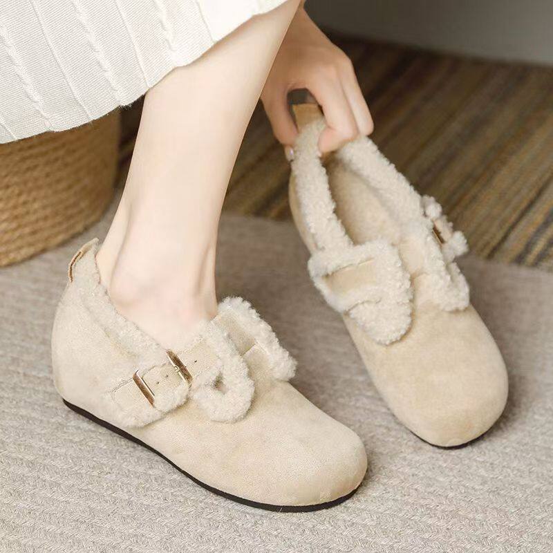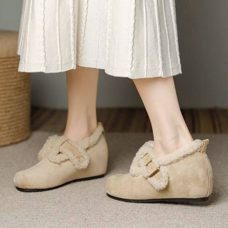 ivaj5cm内增高小个子加绒肯鞋女秋冬保暖毛毛鞋棉鞋杏色休闲圆头
