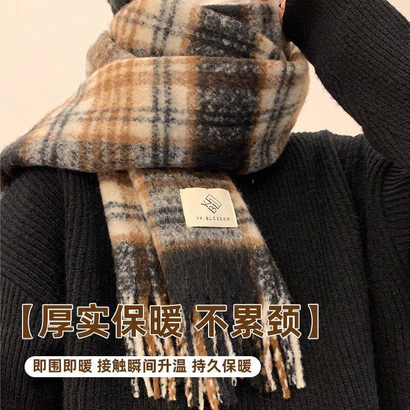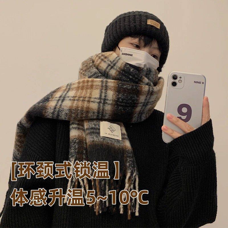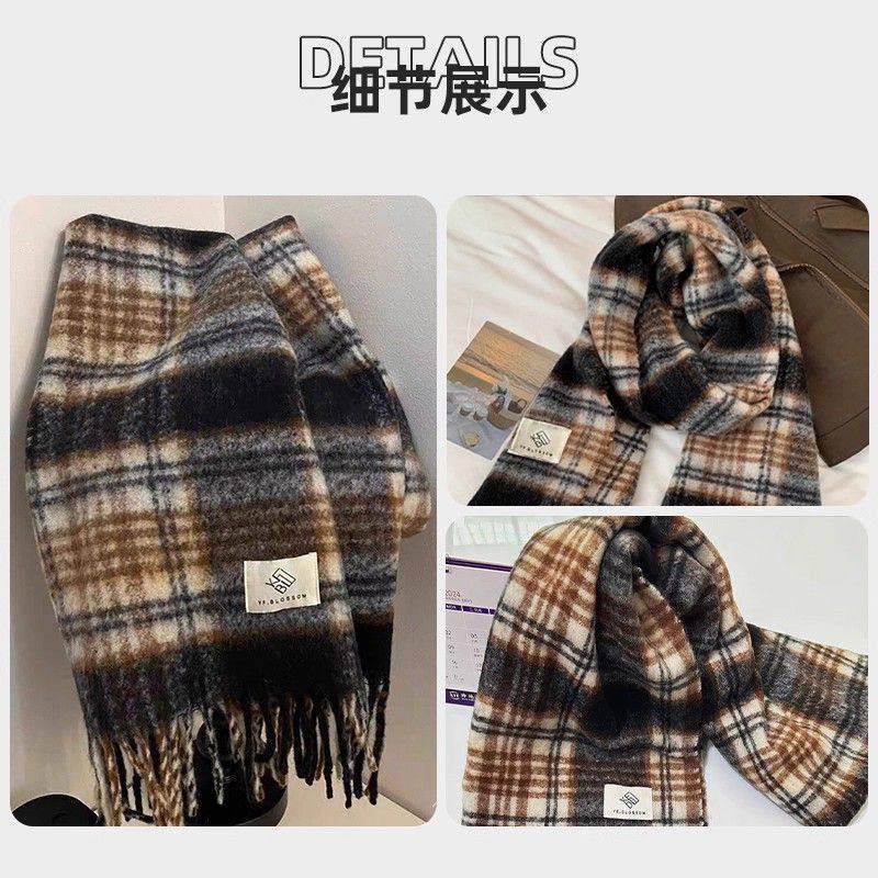 美拉德复古高级感格子围巾男秋冬加长加厚保暖情侣围脖女礼物软糯