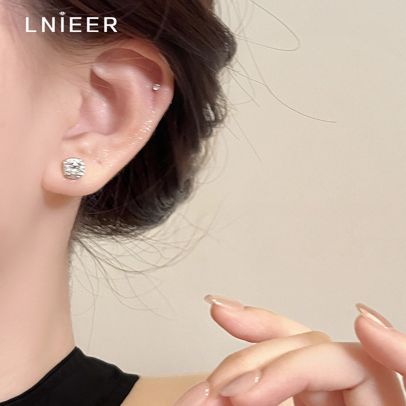 S925纯银耳钉精致爆闪小方糖耳环女轻奢高级感2025爆款耳骨钉耳饰