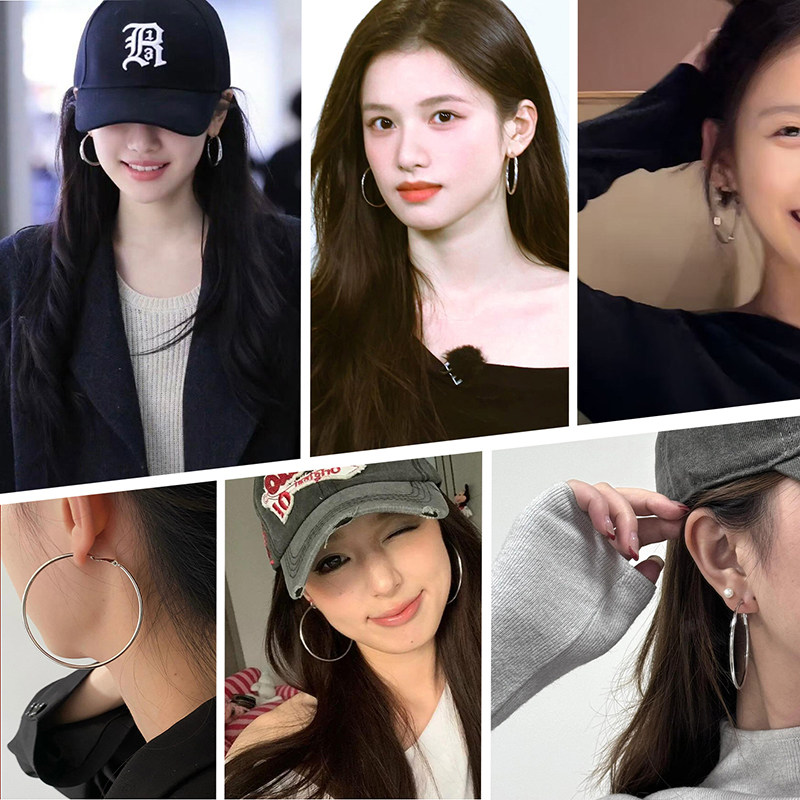 欧美法式夸张大圈圈耳环高级感耳圈银色耳饰2025新款爆款耳扣耳钉