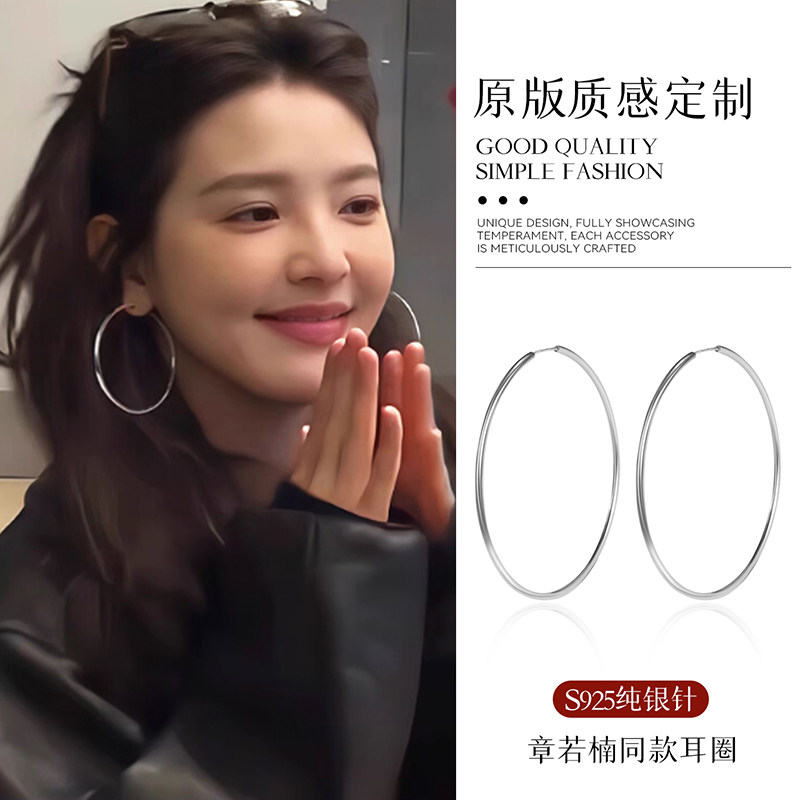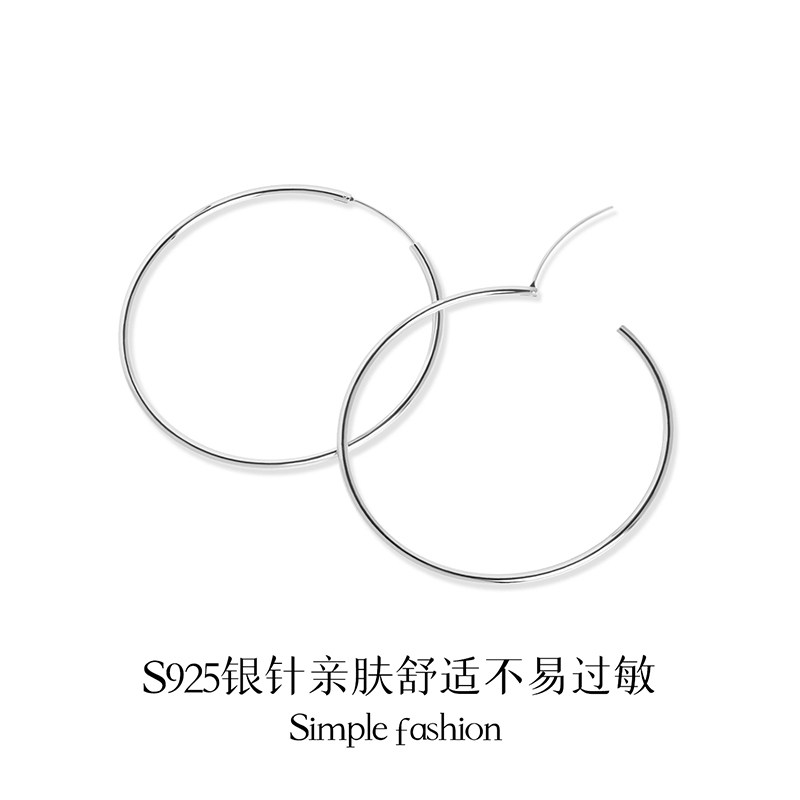925银针大圆圈耳环女小众气质素圈耳钉耳圈夸张高级圈圈耳扣耳饰