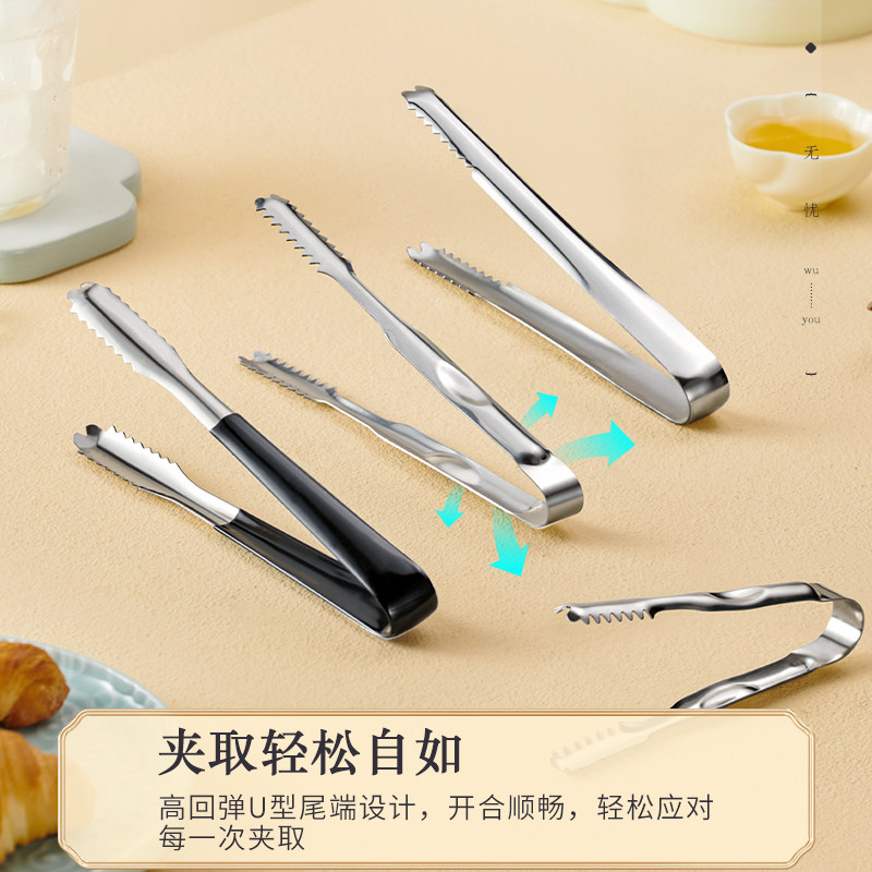 特厚不锈钢304食品夹厨房食物烧烤加厚面包家用牛排烘焙烤肉用具