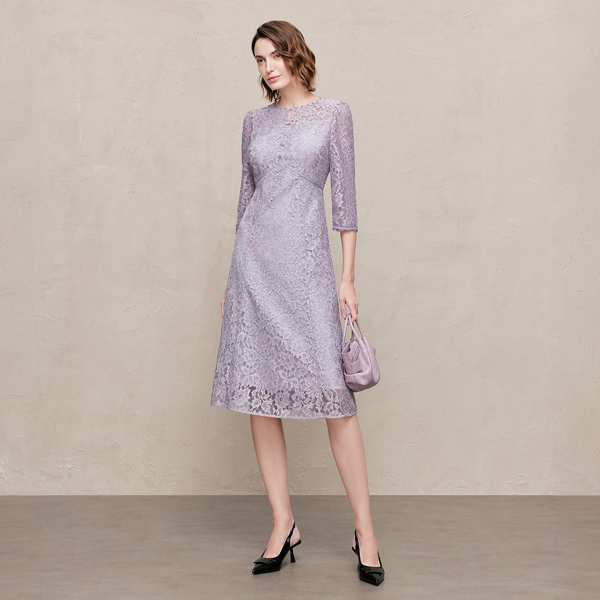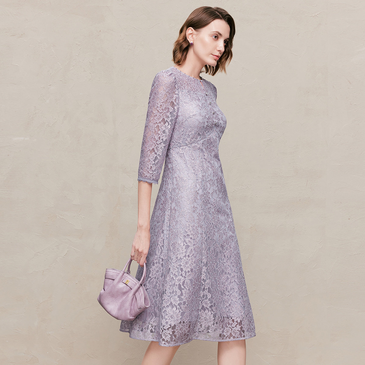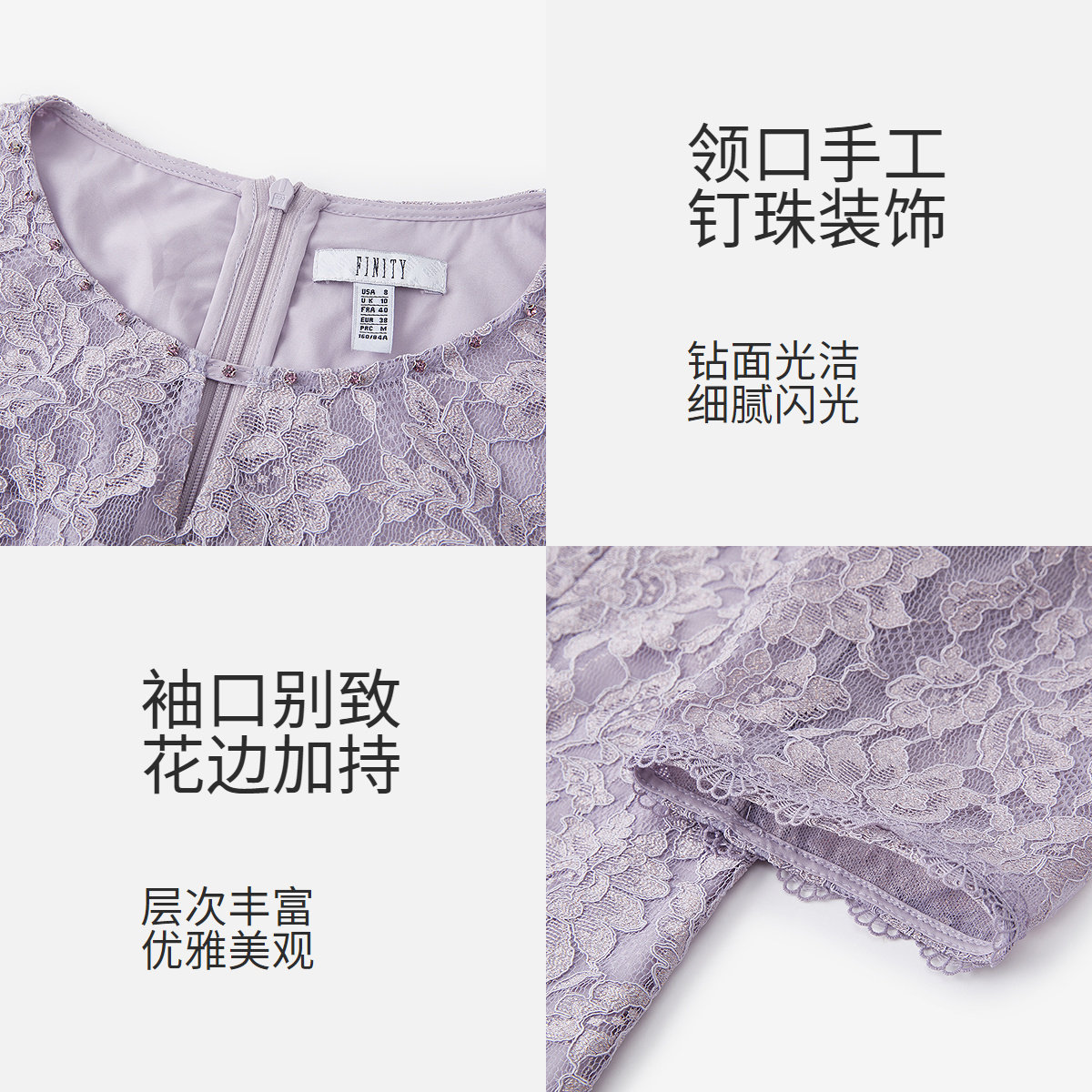 FINITY菲妮迪连衣裙2026春季新款简约蕾丝绣花七分袖优雅裙子女