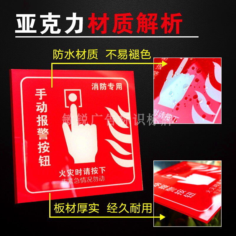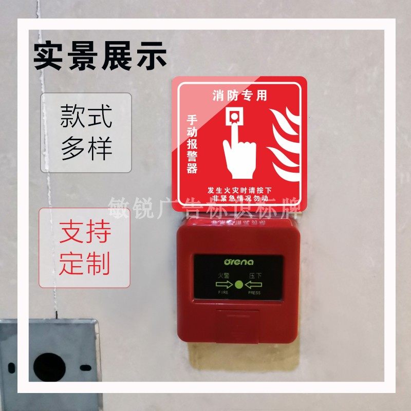 消防手动报警按钮标识火灾声光消火栓启泵亚克力标牌墙贴现货定制