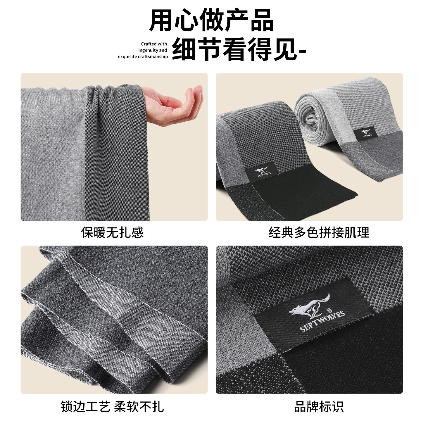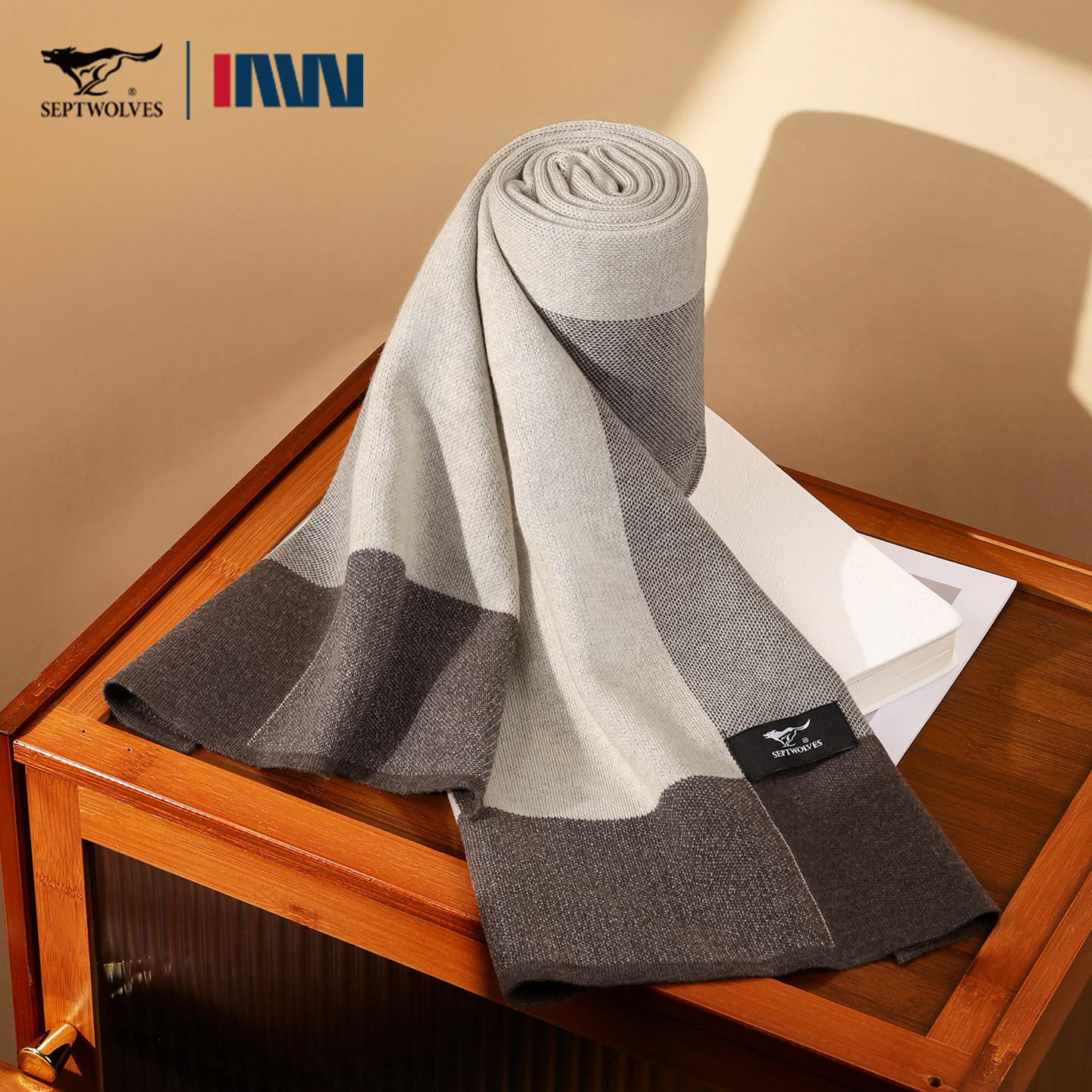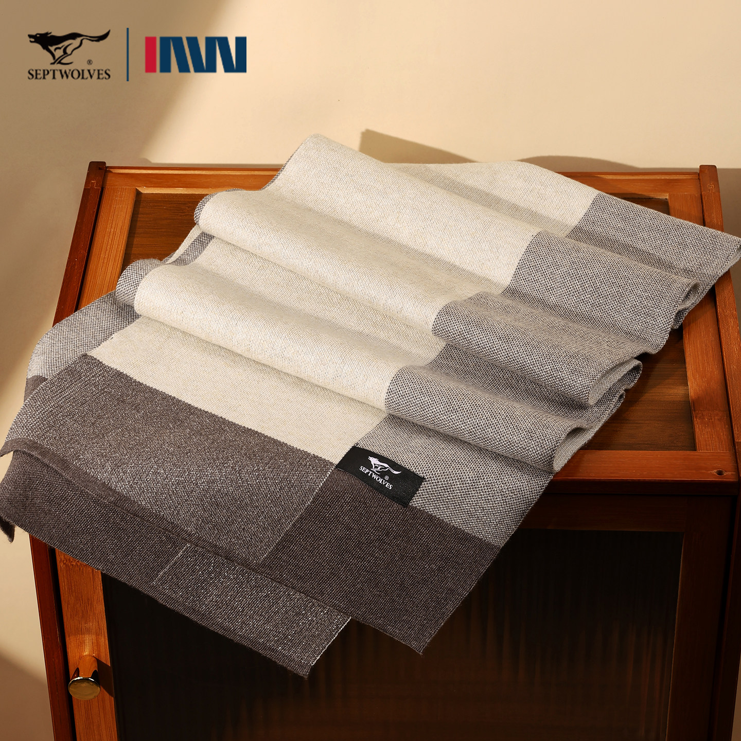 PD七匹狼含羊毛围巾男士春季新款简约纯色高档围脖披肩礼物礼盒装