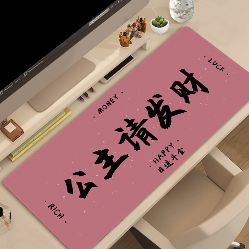公主请发财鼠标垫超大暴富美女文字创意键盘办公室笔记本电脑桌垫