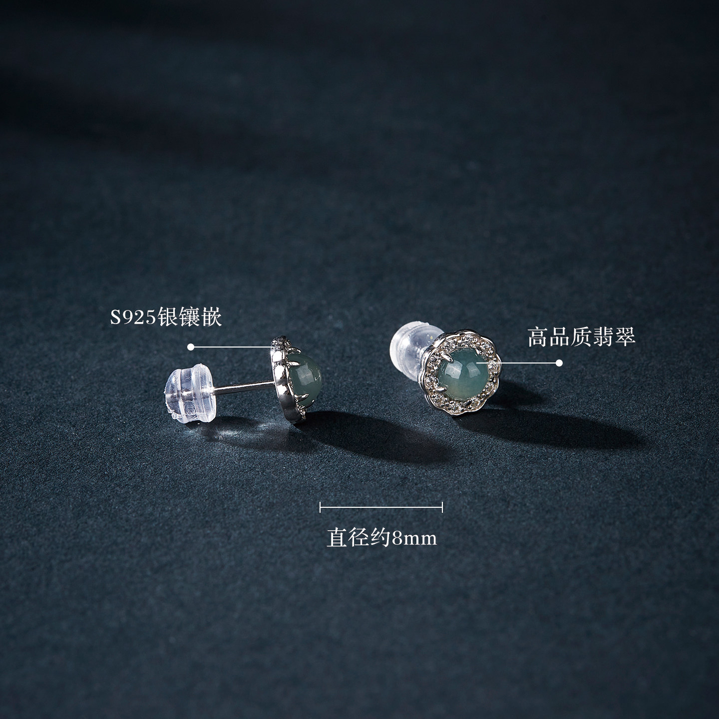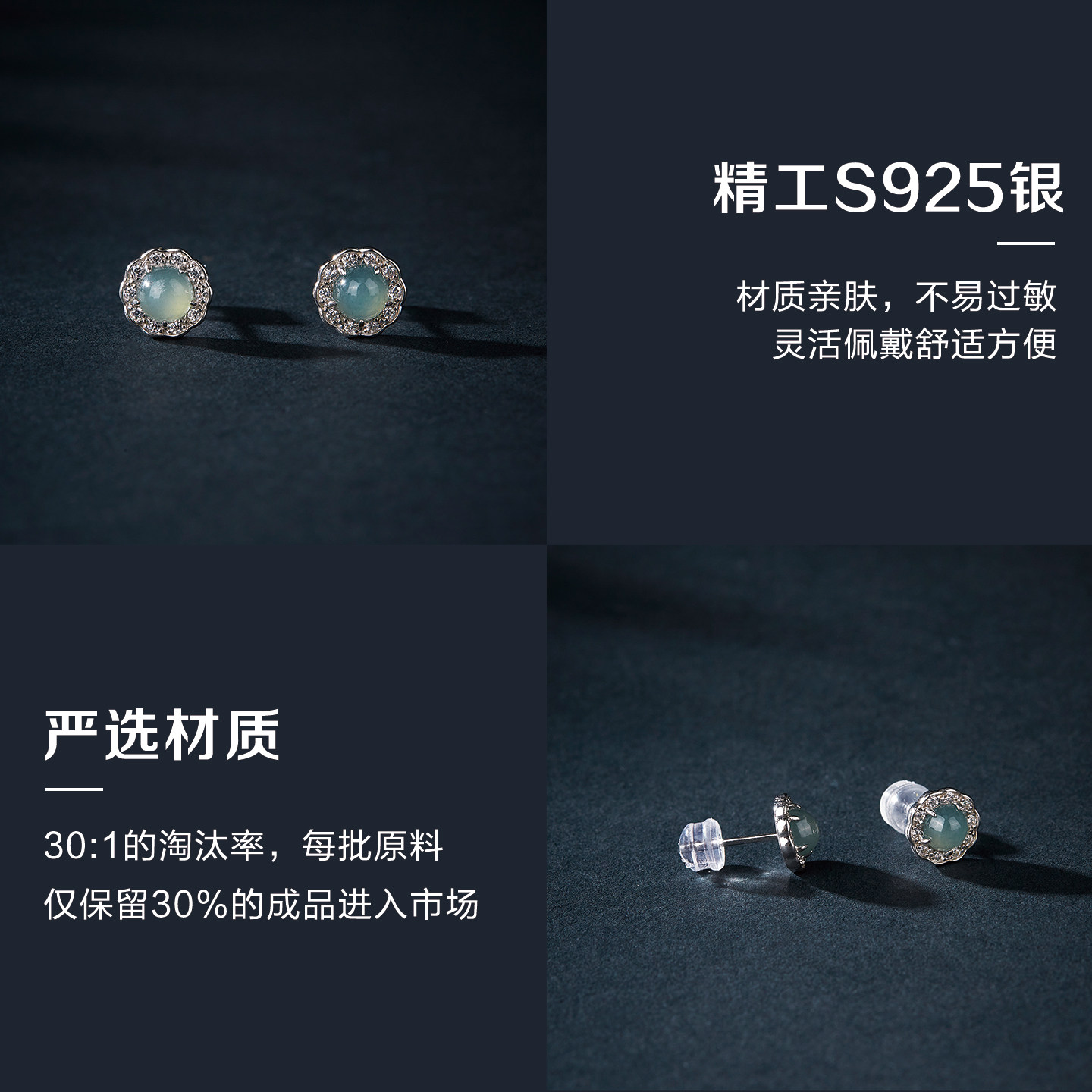 七彩云南翡翠耳钉天然玉石耳饰女宝石蛋面耳环纯银轻奢配饰送礼物